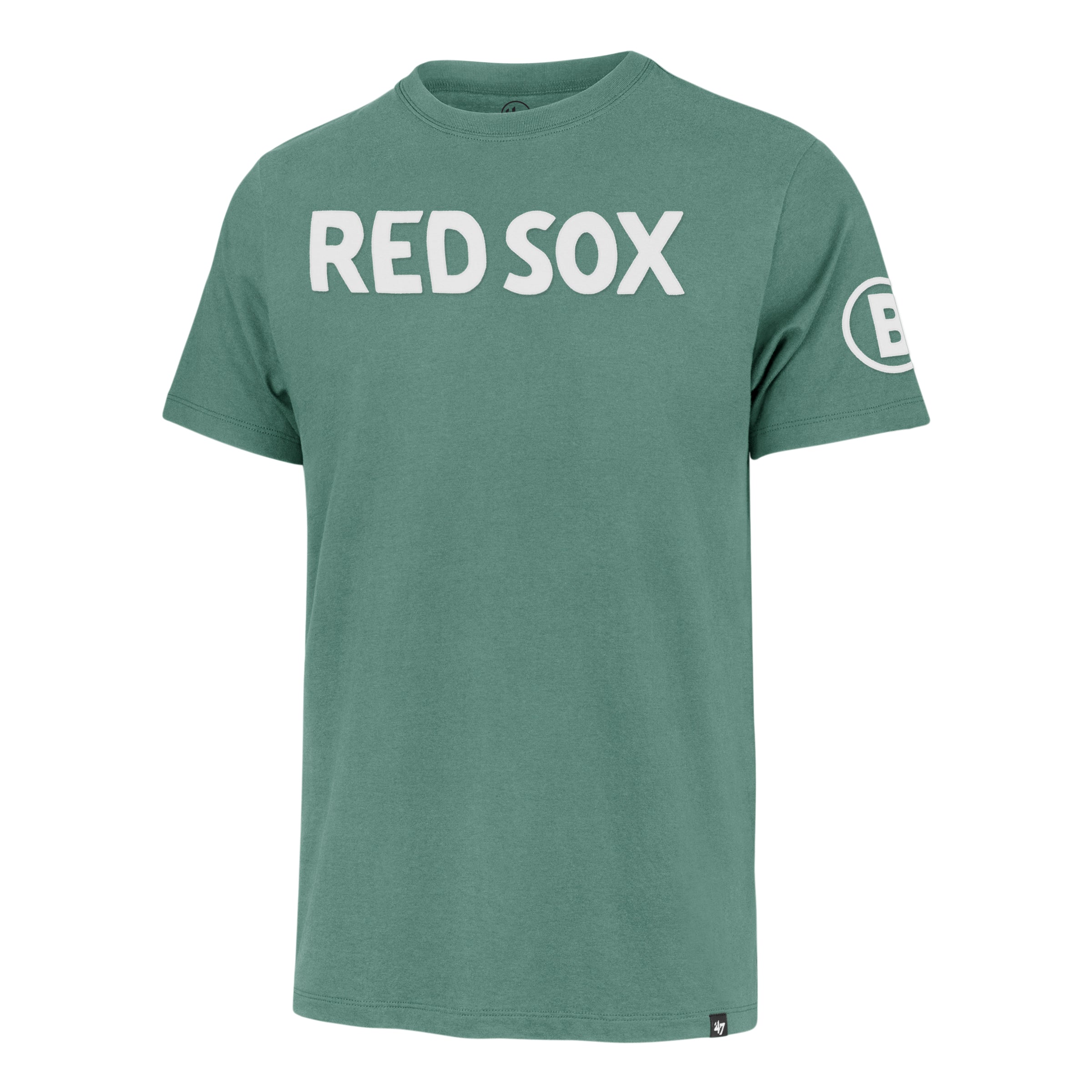 Boston Red Sox 47 City Connect Fieldhouse T-Shirt - Green. The Franklin '47 FIELDHOUSE Tee is made from lightweight 100% cotton with a special garment wash process for a lived-in look and feel. This style features hand-cut, double-layered self-fabric appliques on the front and sleeve.