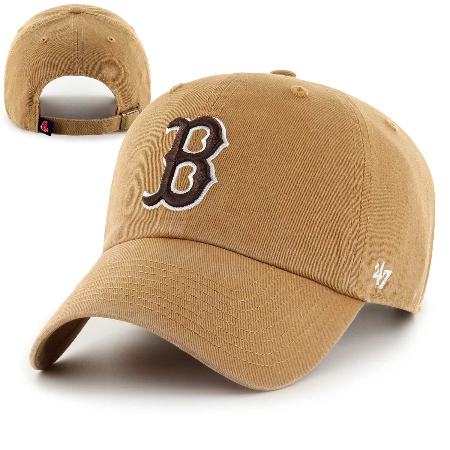 Boston Red Sox 47 Clean-Up - Camel. The '47 CLEAN UP is a relaxed and curved adjustable strapback with raised embroidery on the front and a loop label on the back. Made from garment washed cotton twill.