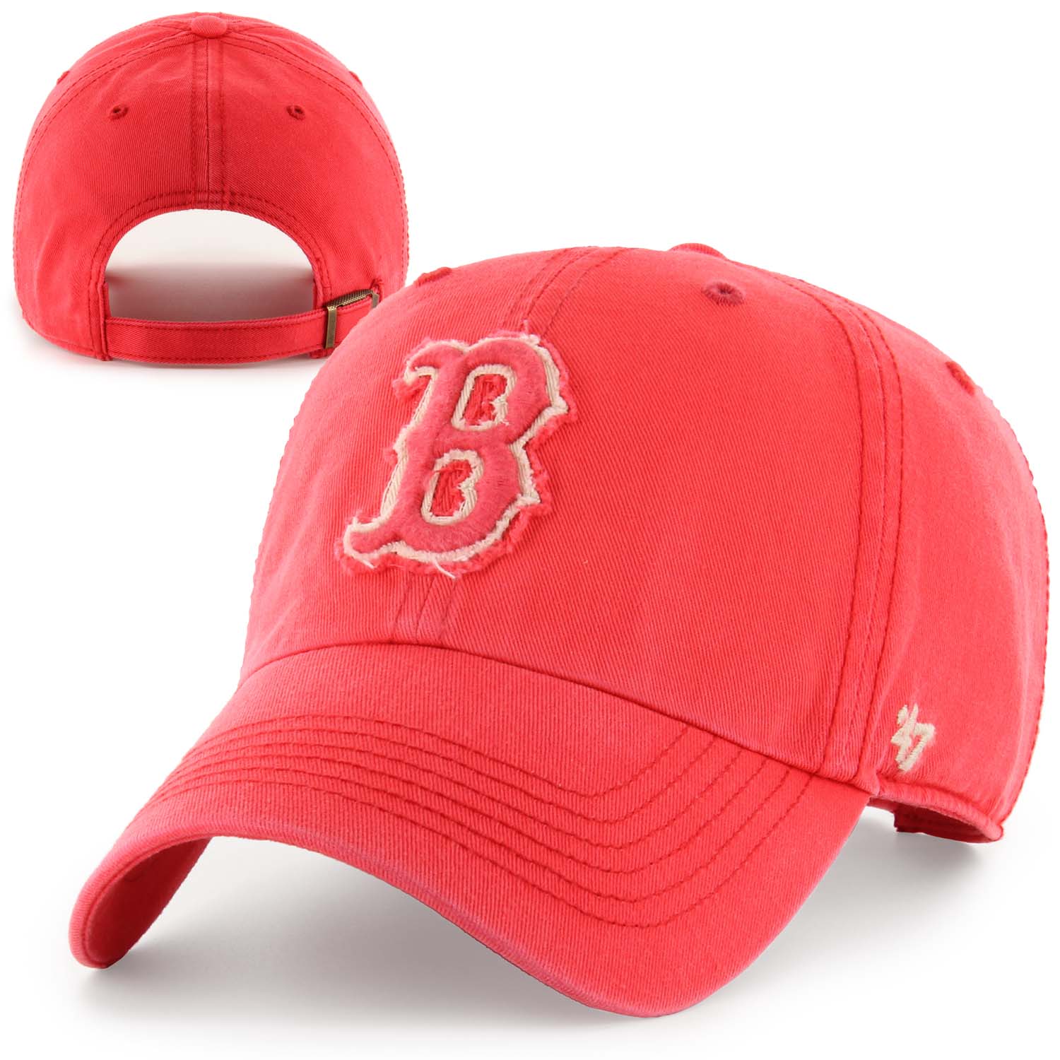 Boston Red Sox 47 Clean-Up - Chasm - Tango Red Sox relaxed fit hat with a sewn on vintage faded applique B logo. If you are looking for a hat with the pre-worn in look, this is the pre-tattered Sox logo. This hat is 100% garment washed cotton for a broken-in look and feel. This hat has a cloth adjustable strap and is one size fits all.