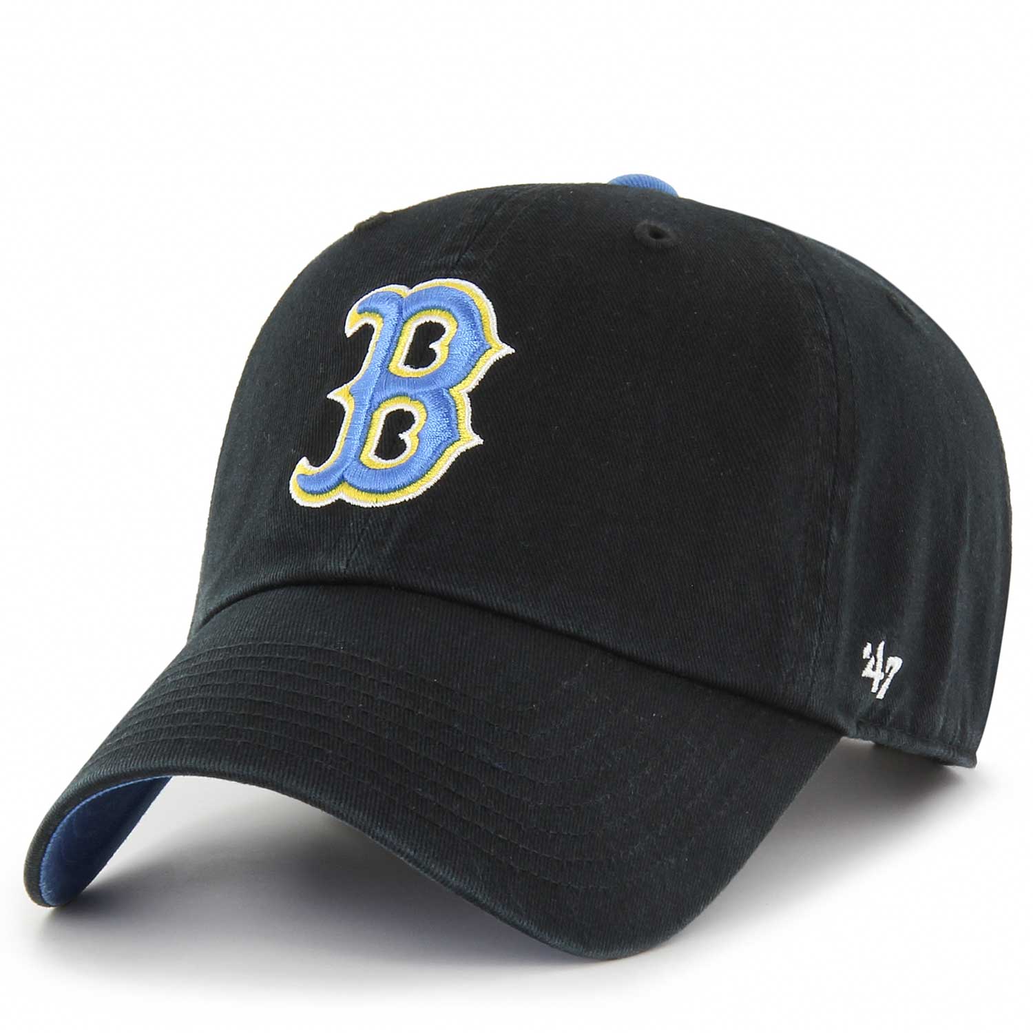 Boston Red Sox 47 Clean-Up - City Connect - Black. The City Connect '47 CLEAN UP is a relaxed and curved adjustable strapback with raised embroidery on the front, flat embroidery on the side, and a pop color undervisor. Made from garment washed cotton twill.