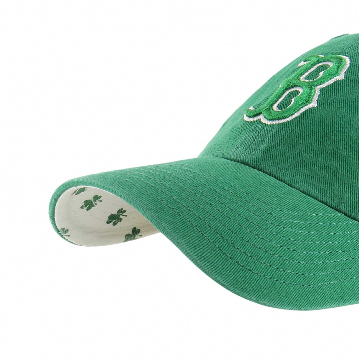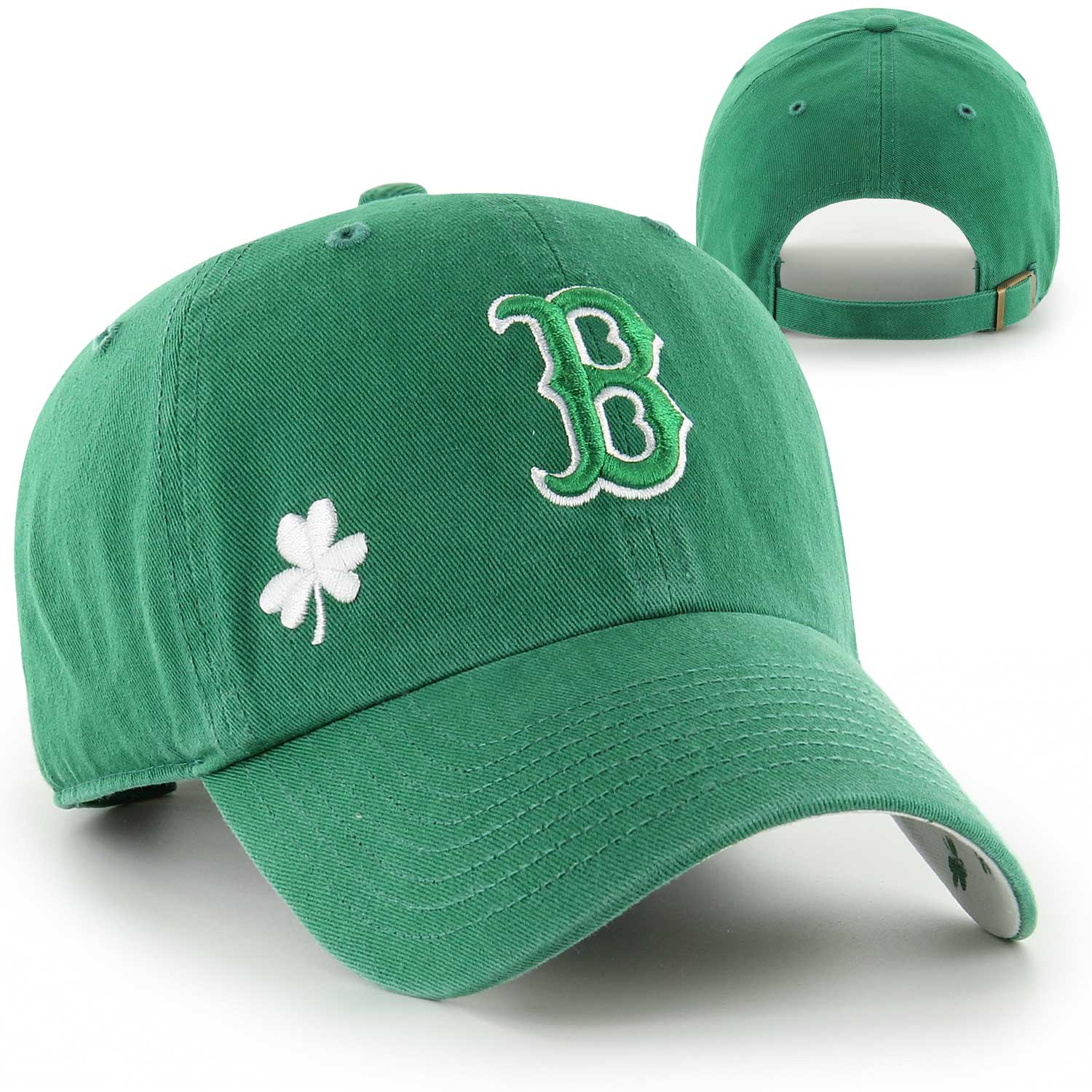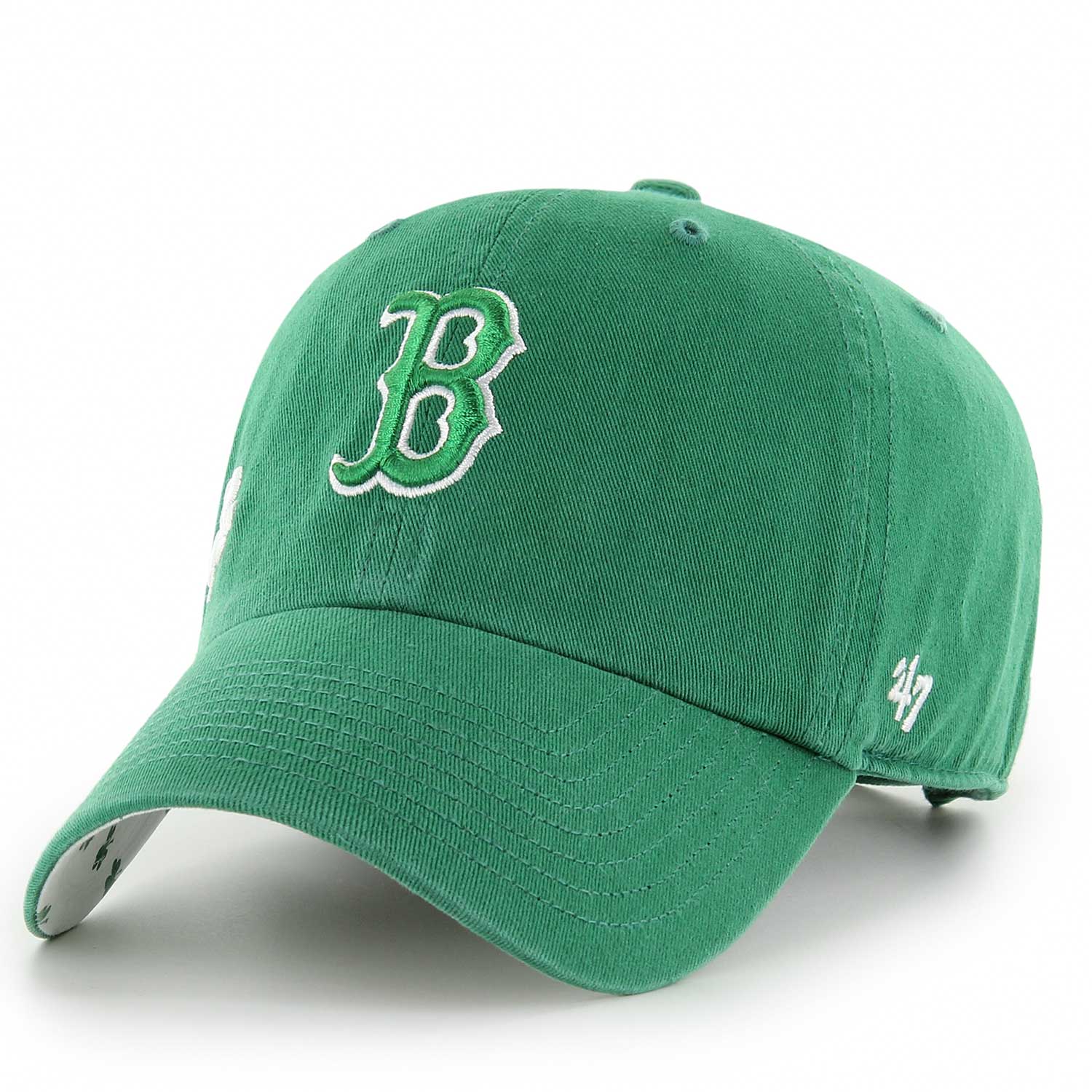 Boston Red Sox 47 Clean-Up - Confetti Icon - Kelly. The Confetti Icon '47 CLEAN UP is a relaxed and curved adjustable strapback with raised embroidery on the front and a color pop undervisor with the shamrock logos. Made from garment washed cotton twill.