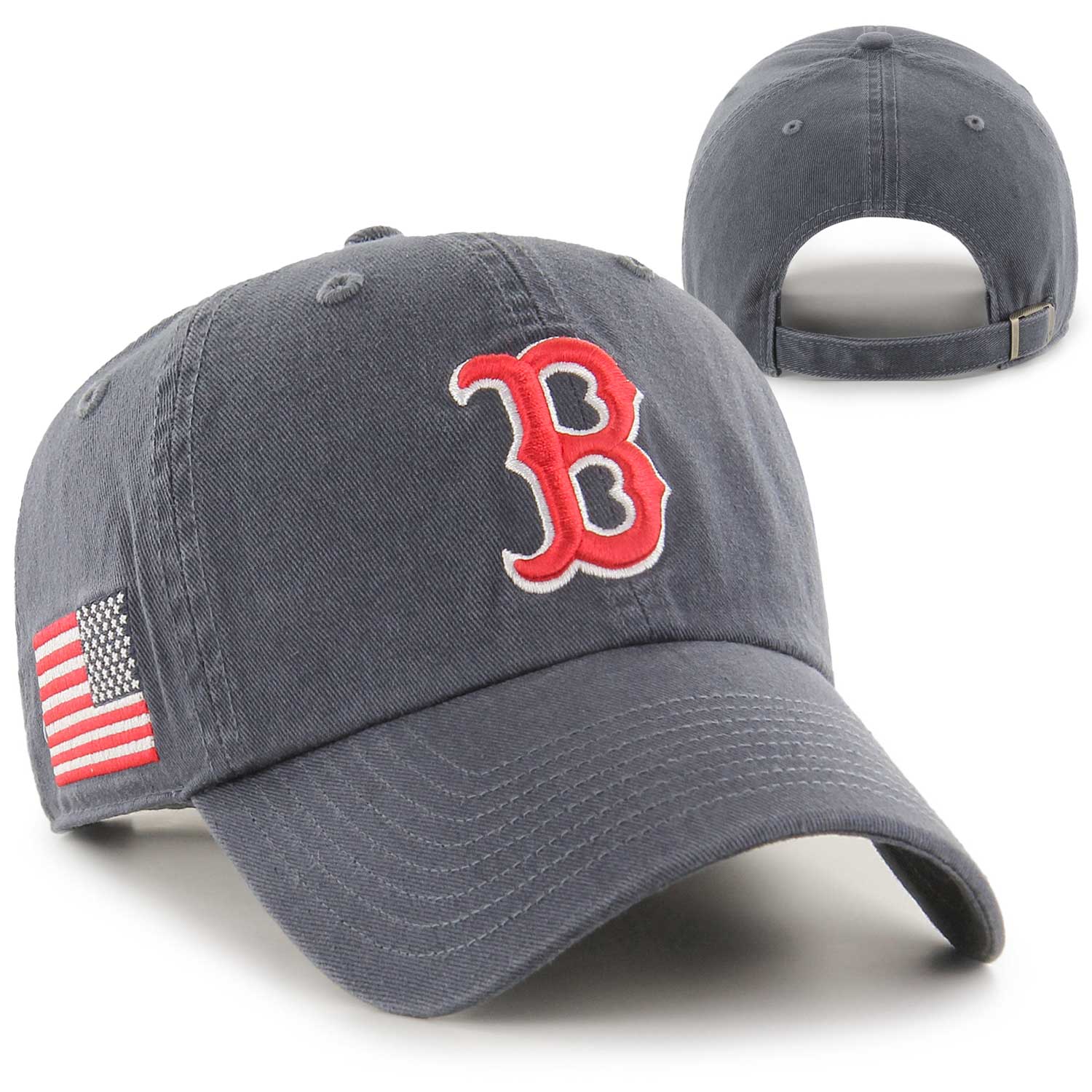 Boston Red Sox '47 Heritage American Flag Side Logo Adjustable hat. Classic Red Sox B logo on the front and an American Flag on the side. The colors have been revamped to be deeper and brighter, resulting in a more vibrant cap.