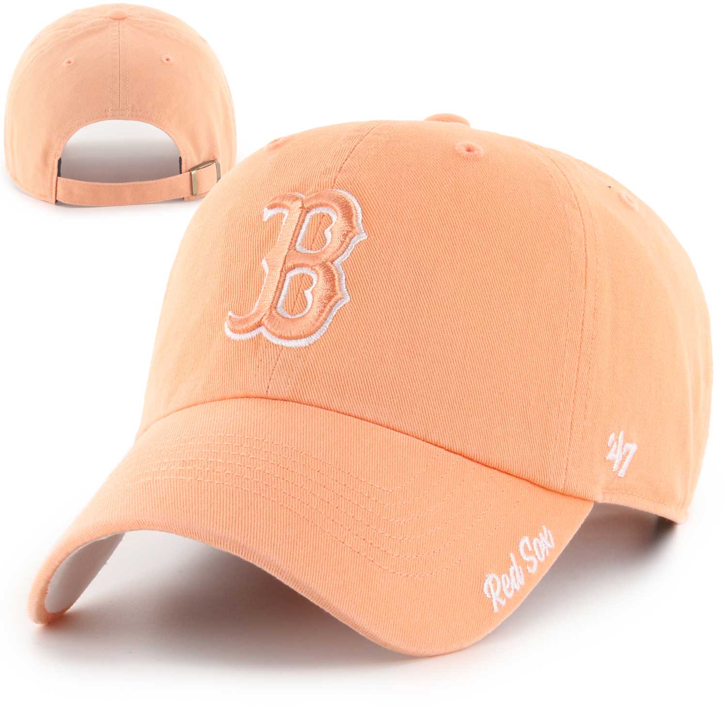 Boston Red Sox 47 Clean-Up - Luminance - Orange. The '47 CLEAN UP is a relaxed and curved adjustable strapback with a raised embroidered B logo on the front. Made from garment washed cotton twill.
