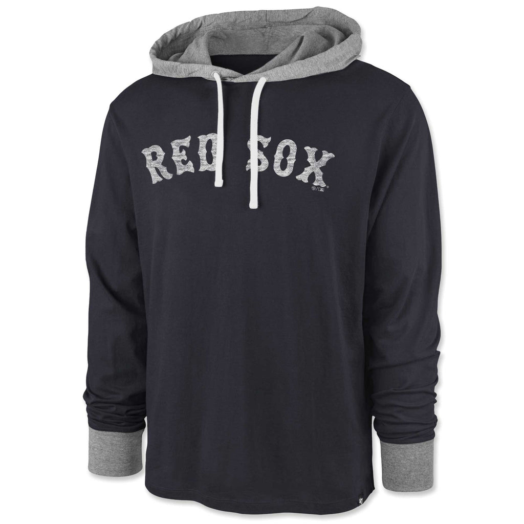Boston Red Sox 47 Franklin Domino Hood - Navy. The '47 FRANKLIN Hood is made from lightweight 100% cotton with a special garment wash process for a lived-in look and feel. This style features distressed graphics on the front and left sleeve along with soft, muted colors for a vintage aesthetic.