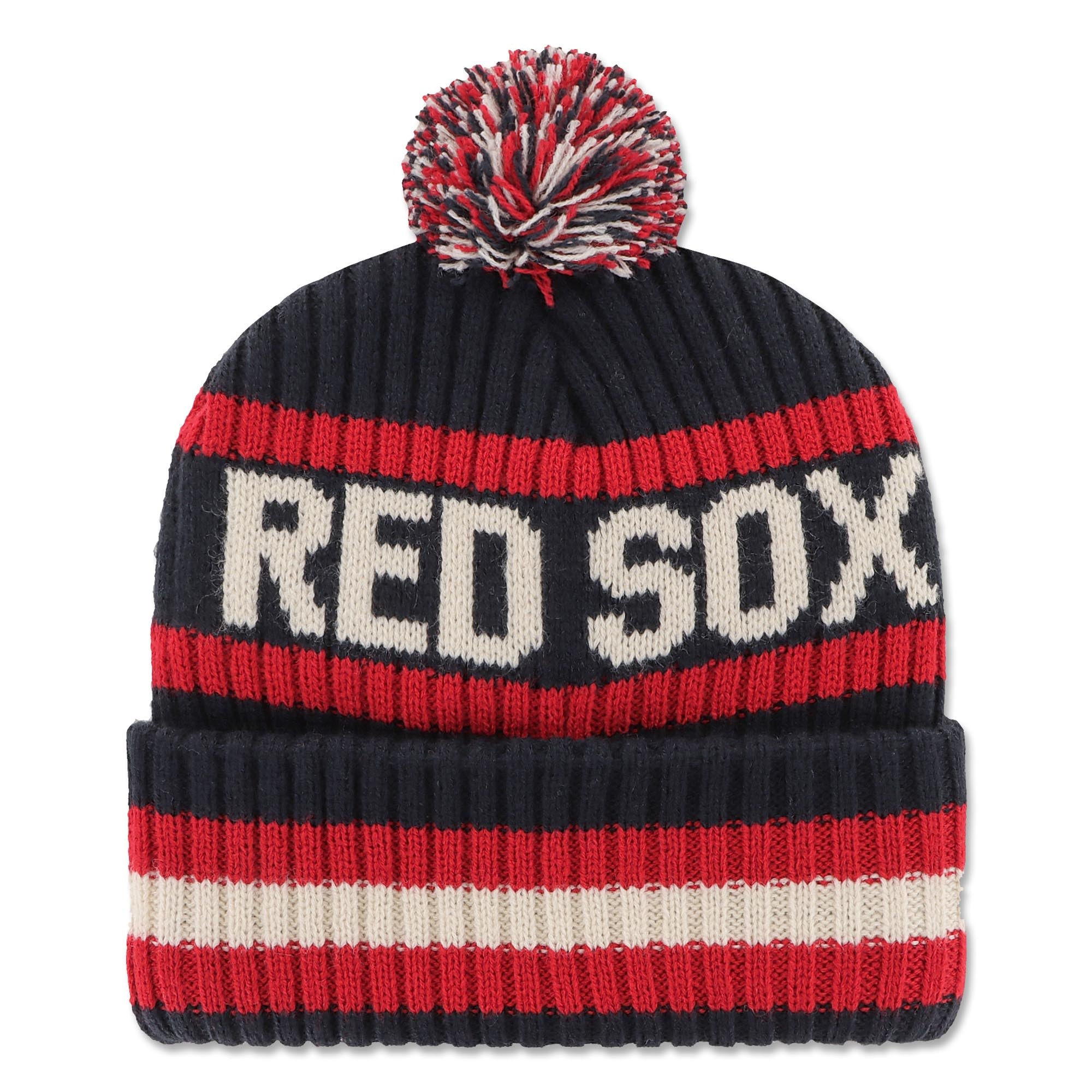 Boston Red Sox 47 Knit - Bering - Navy/Red. The Bering '47 CUFF KNIT is made from soft and warm acrylic yarns and microfleece with text jacquard, raised front embroidery, and a pom on top.