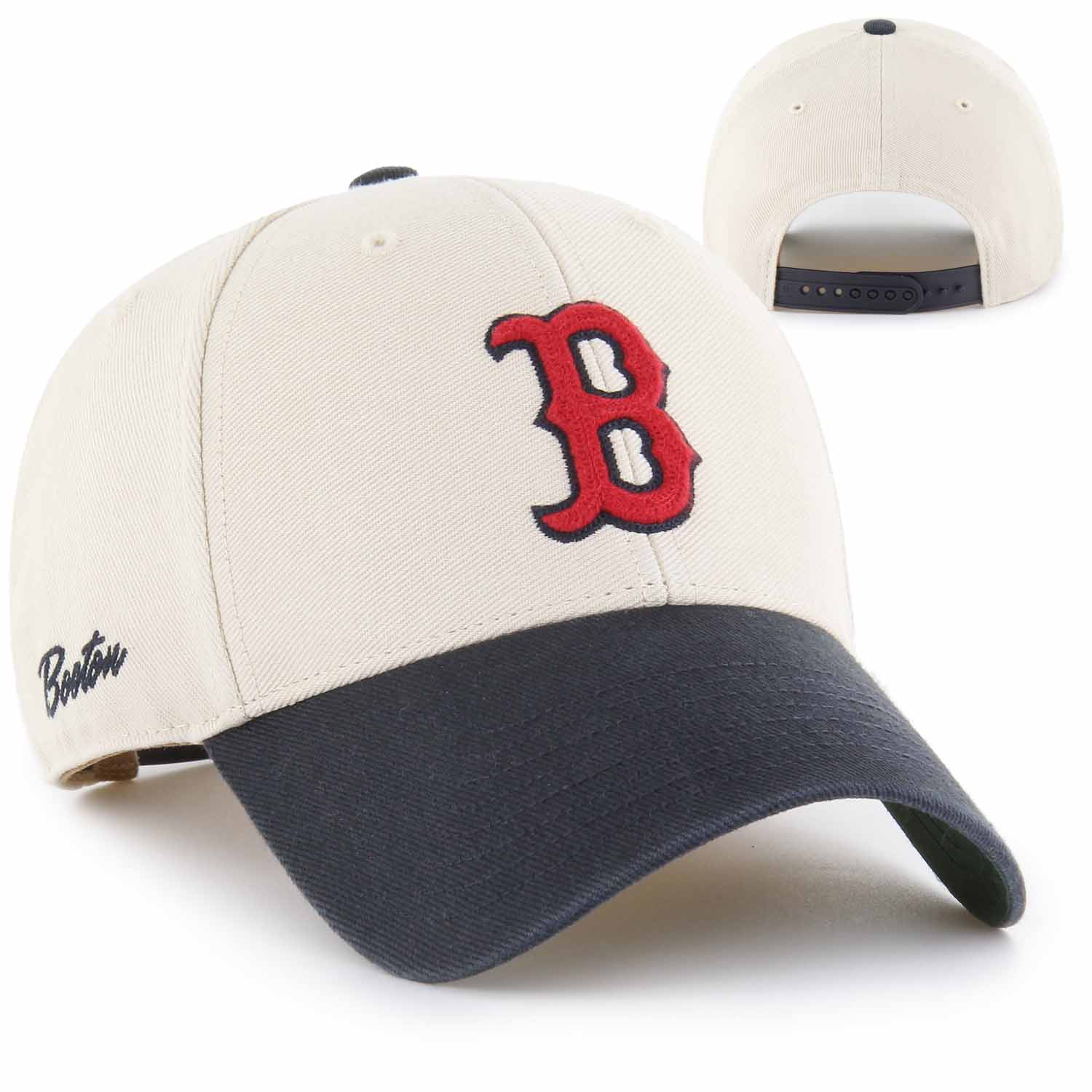 Boston Red Sox 47 MVP - Fairfield. The '47 MVP has a structured crown, a curved visor, and an adjustable hook and loop closure. The front has raised embroidery and the back has flat embroidery. Made from Wool Blend material.