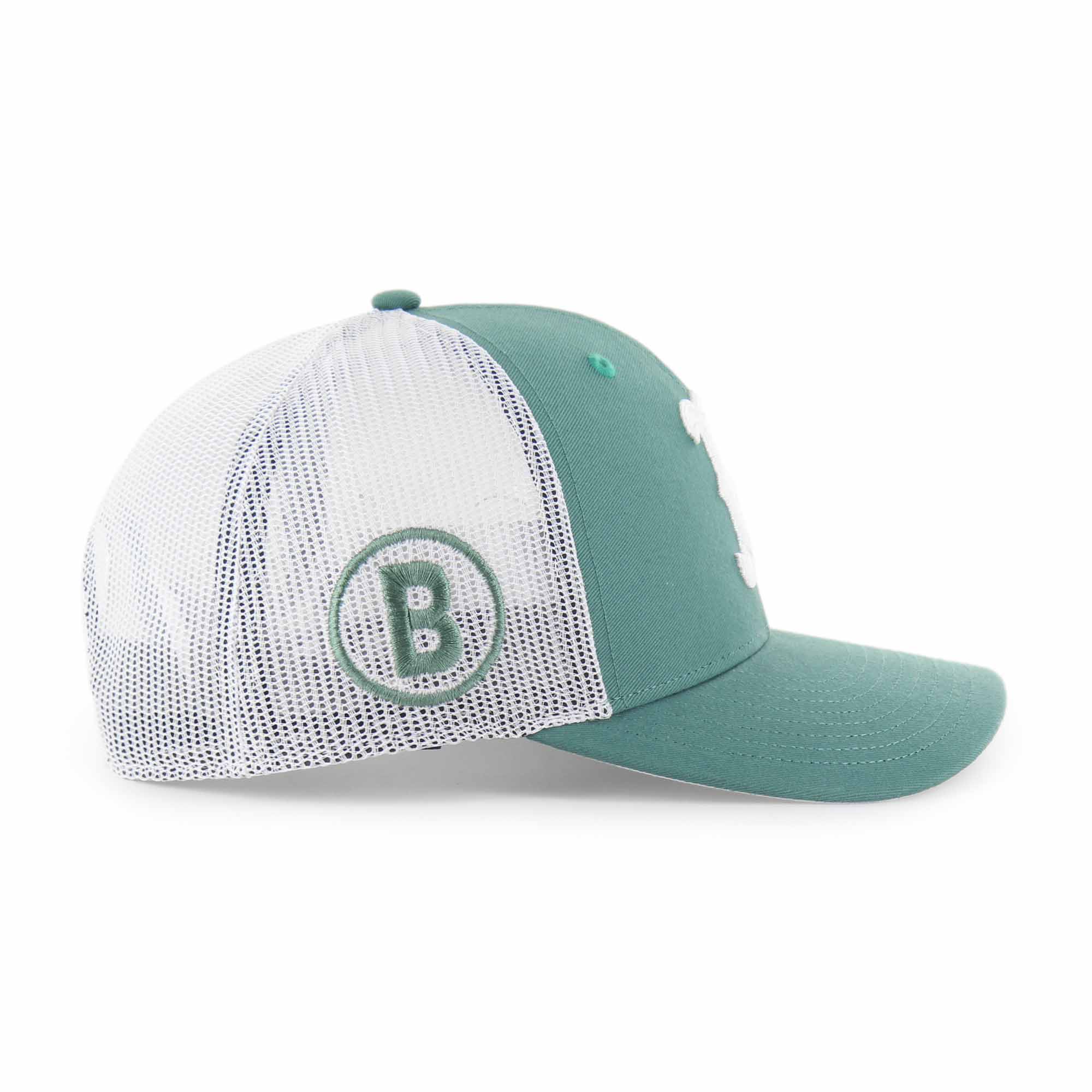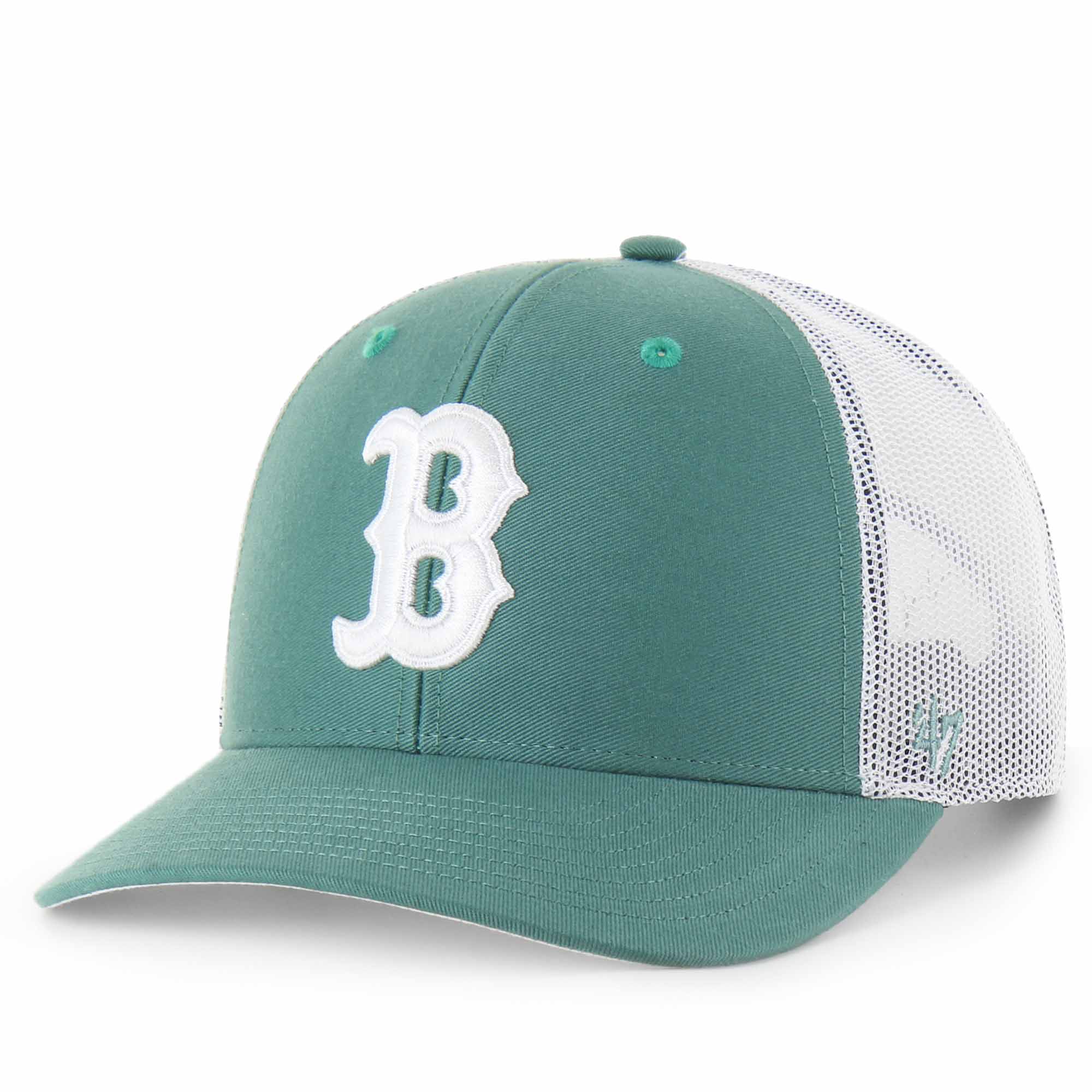 Boston Red Sox 47 Snapback - 25 City Connect - Green - Trucker. The City Connect '47 Trucker has a comfortable mid-crown, a curved visor, and an adjustable plastic snapback. The front has a woven label with flat embroidery. Made from garment washed cotton twill and hard mesh.