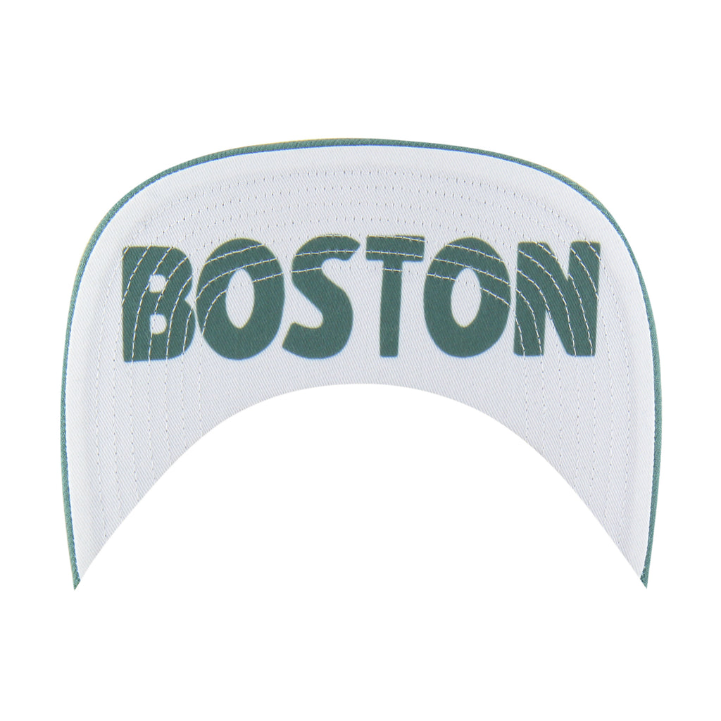Boston Red Sox 47 Snapback - Captain - 25 City Connect - Green. The City Connect '47 CAPTAIN has a structured crown, flat visor, and an adjustable snapback. The front has raised embroidery, the side has flat embroidery, and the undervisor has a pop color with sublimation print. Made from Wool Blend material and polyester twill.