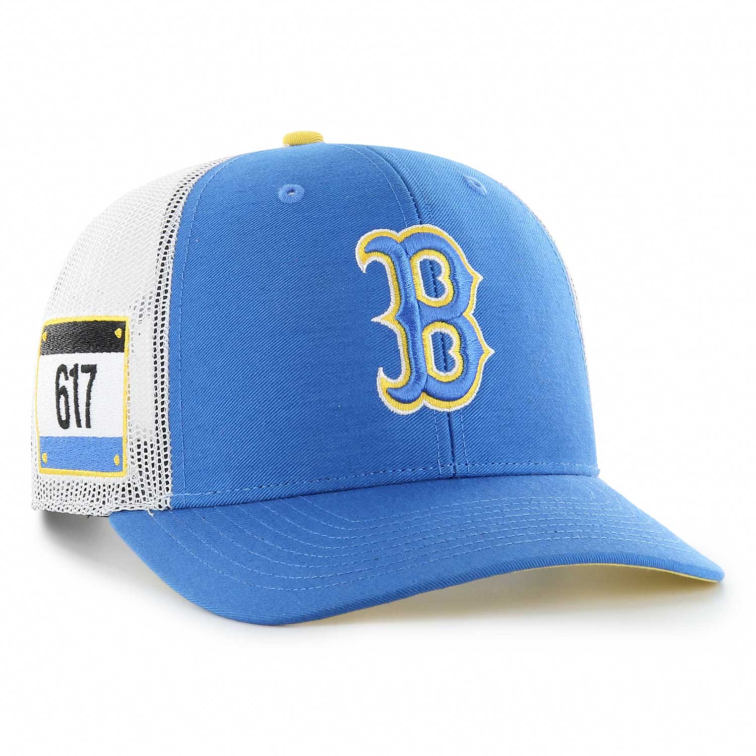 Boston Red Sox 47 Snapback - City Connect - B Logo - Trucker. The City Connect '47 Trucker has a comfortable mid-crown, a curved visor, and an adjustable plastic snapback. The front has a woven label with flat embroidery. Made from garment washed cotton twill and hard mesh.