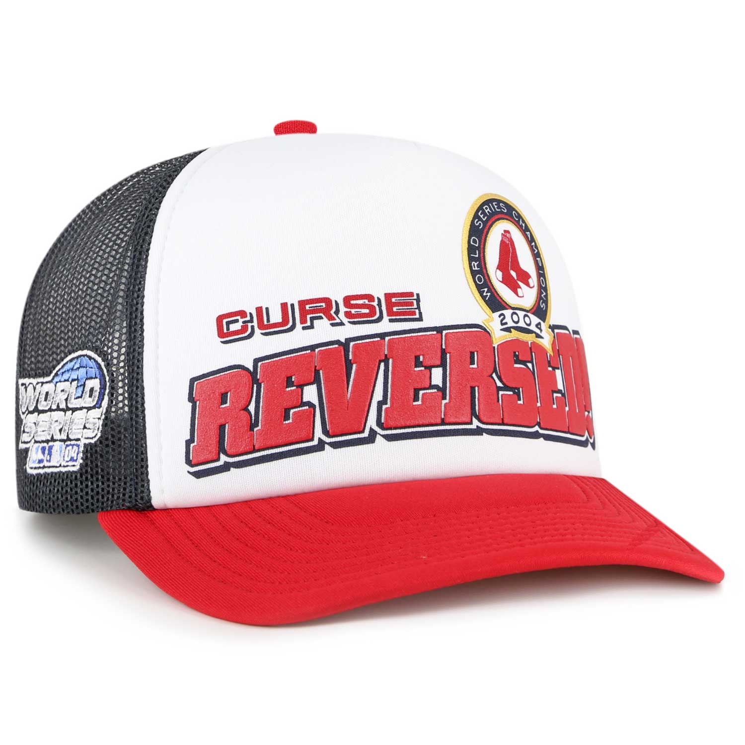 Boston Red Sox 47 Snapback - Trucker - 2004 Curse Reversed. The '47 Trucker has a comfortable mid-crown, a curved visor, and an adjustable snapback strap. Made from garment washed cotton twill and hard mesh. Garment Washed Cotton Twill and Soft Mesh, - Structured Crown, Adjustable Snapback