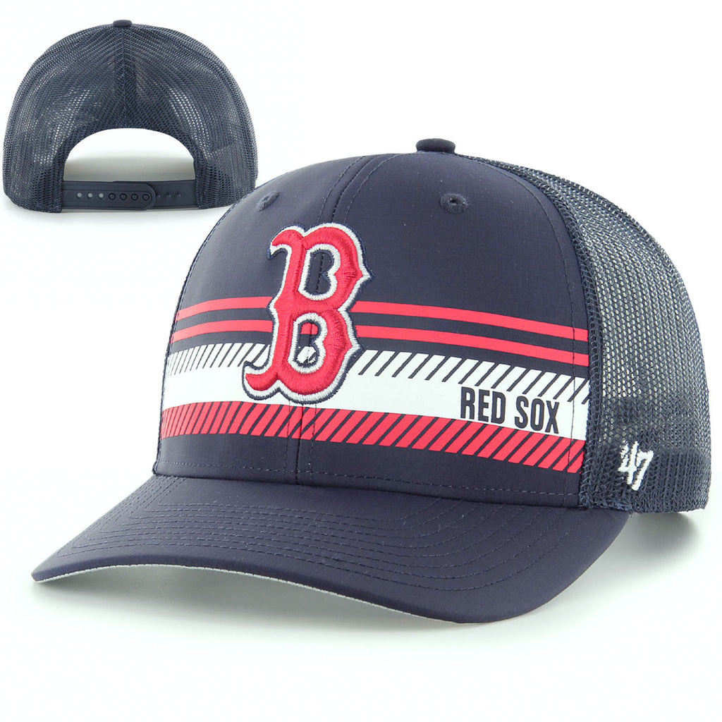 Boston Red Sox 47 Snapback - Trucker - Navy. The '47 Trucker has a comfortable mid-crown, a curved visor, and an adjustable plastic snapback. The front has a raised embroidery logo. Made from garment washed cotton twill and hard mesh. Garment Washed Cotton Twill and Soft Mesh, - Structured Crown, Adjustable Snapback
