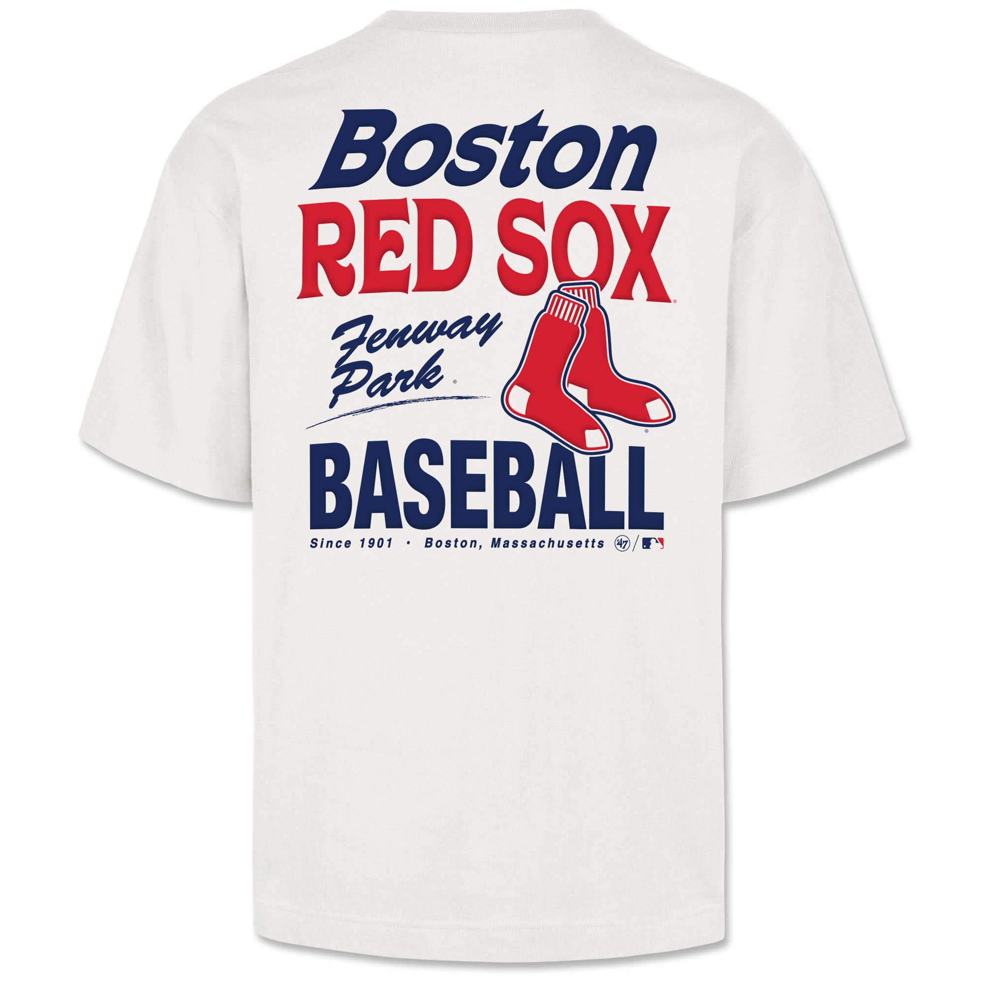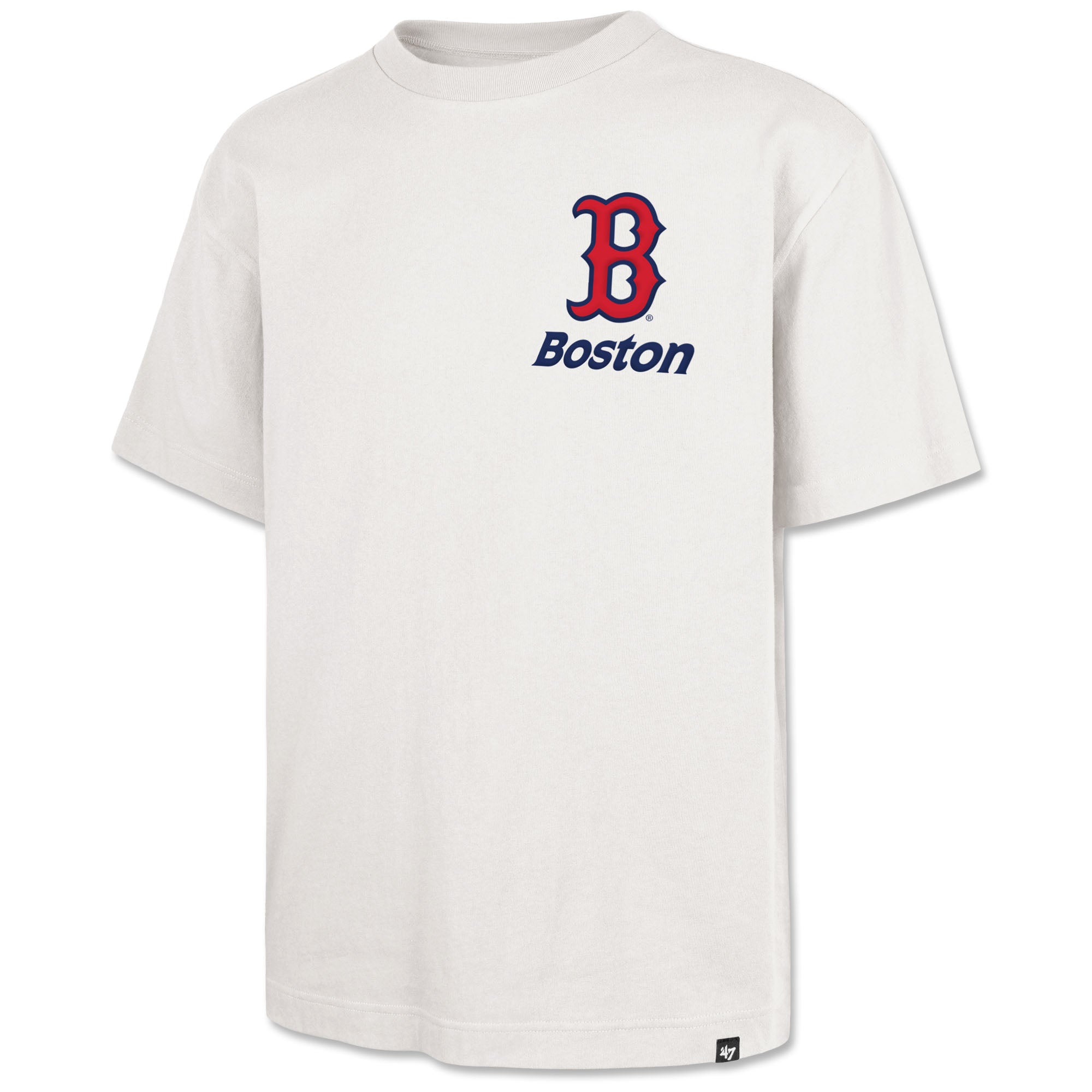 Boston Red Sox '47 Foundation T-Shirt - All Fire - Sandstone. The ’47 Foundation Tee is a 100% cotton tee crafted from heavyweight cotton jersey with a sturdier structure that holds its shape featuring bespoke screen-printed graphics that honor each team’s city and history. This is an oversized silhouette. 100% heavy weight cotton jersey for a sturdier structure that holds its shape