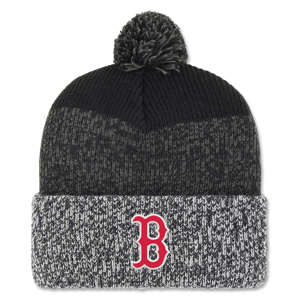 Boston Red Sox Knit - Static Cuff - Black. The Static '47 cuff knit is made from soft, marled acrylic yarns that stretch to your shape. The cuff has raised embroidery of the Red Sox B logo and the crown has a pom on top.