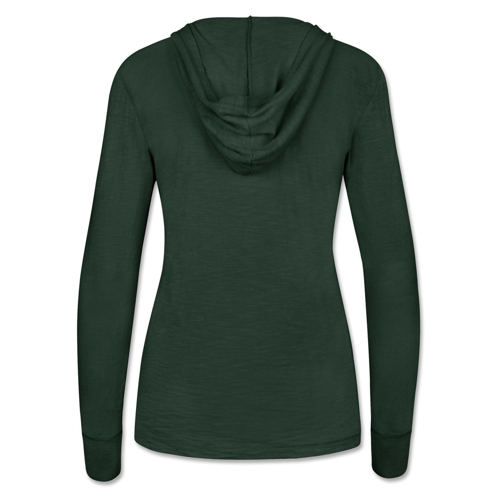 Boston Red Sox Ladies 47 Primetime Hood - Green Monster. This ladies hood has a super soft feel. It features a distressed screen print that reads "Green Monster Fenway Park" across the top and bottom and the classic 2 Sox logo. Also featured is a notched v-neck cut. Made with 100% ring spun Peruvian cotton. Ladies Cut.