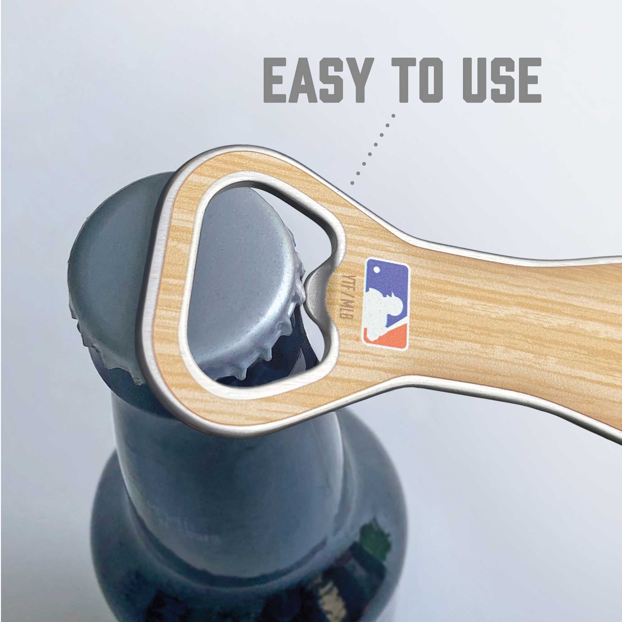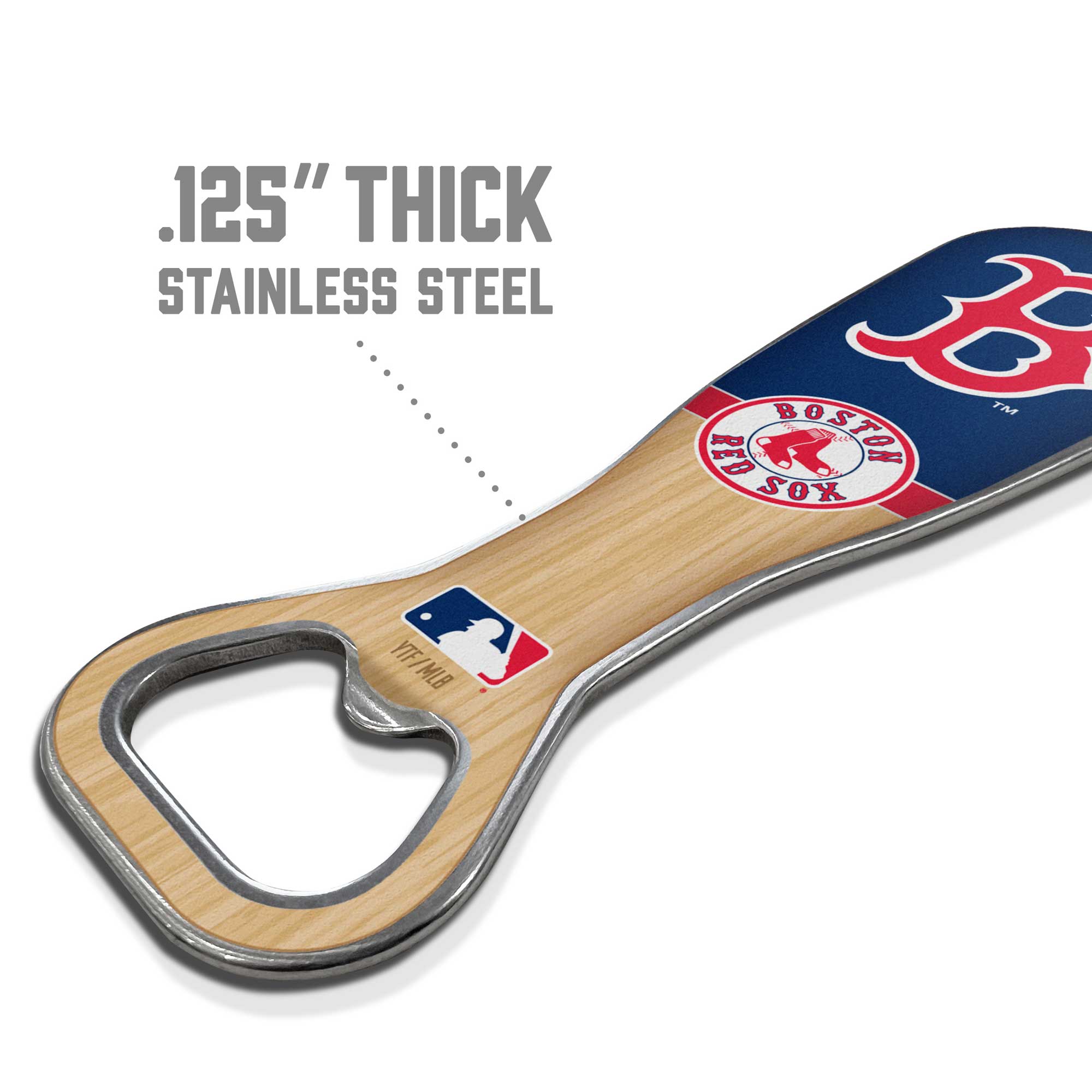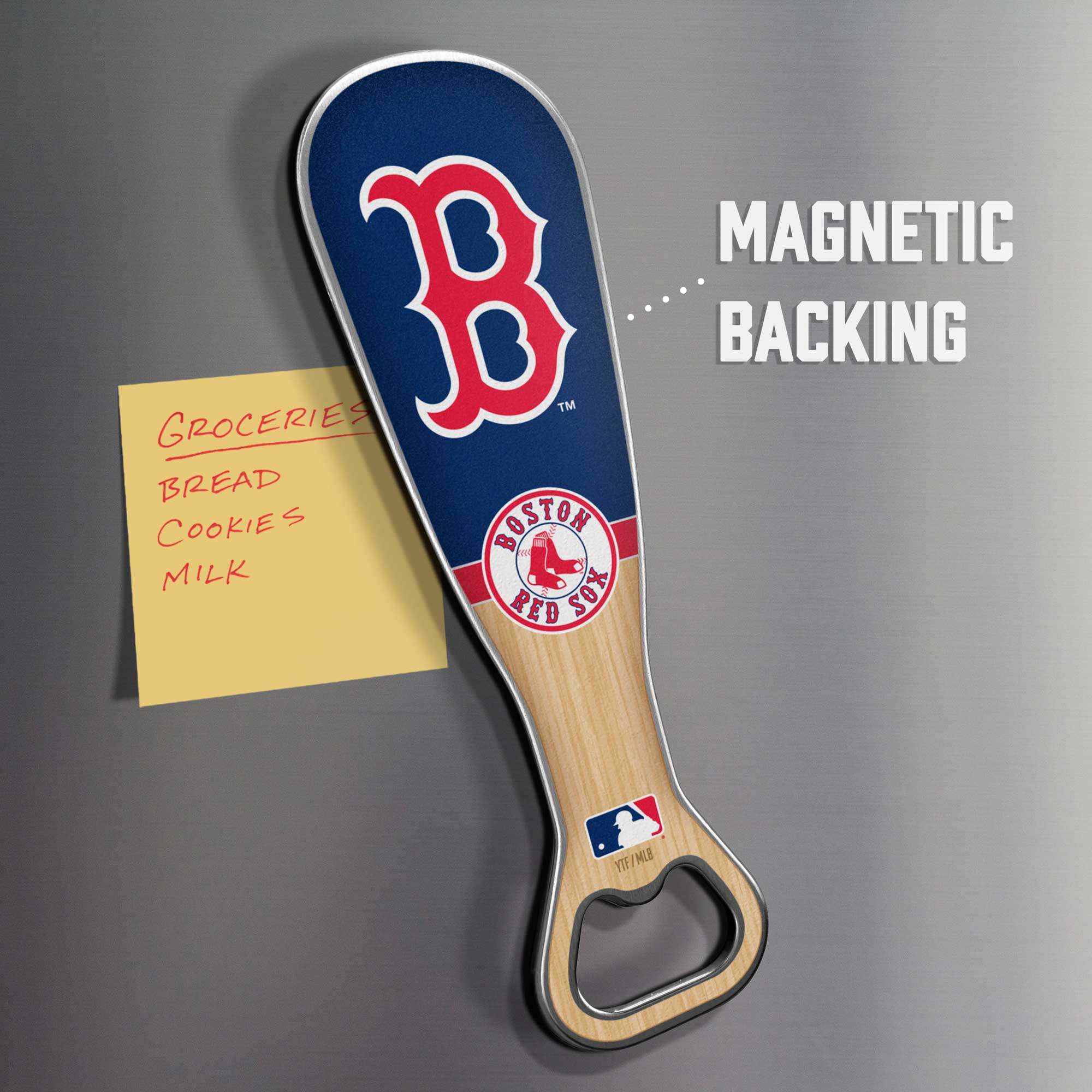 Boston Red Sox Magnet - Bottle Opener Bat. Crack open a win with the Season Opener Bottle Opener! This magnetic, stainless steel bottle opener is like no other! The baseball batt is specially designed to open bottles! And when you’re done with it, simply put it on your fridge or any magnetic surface to show off your team pride!