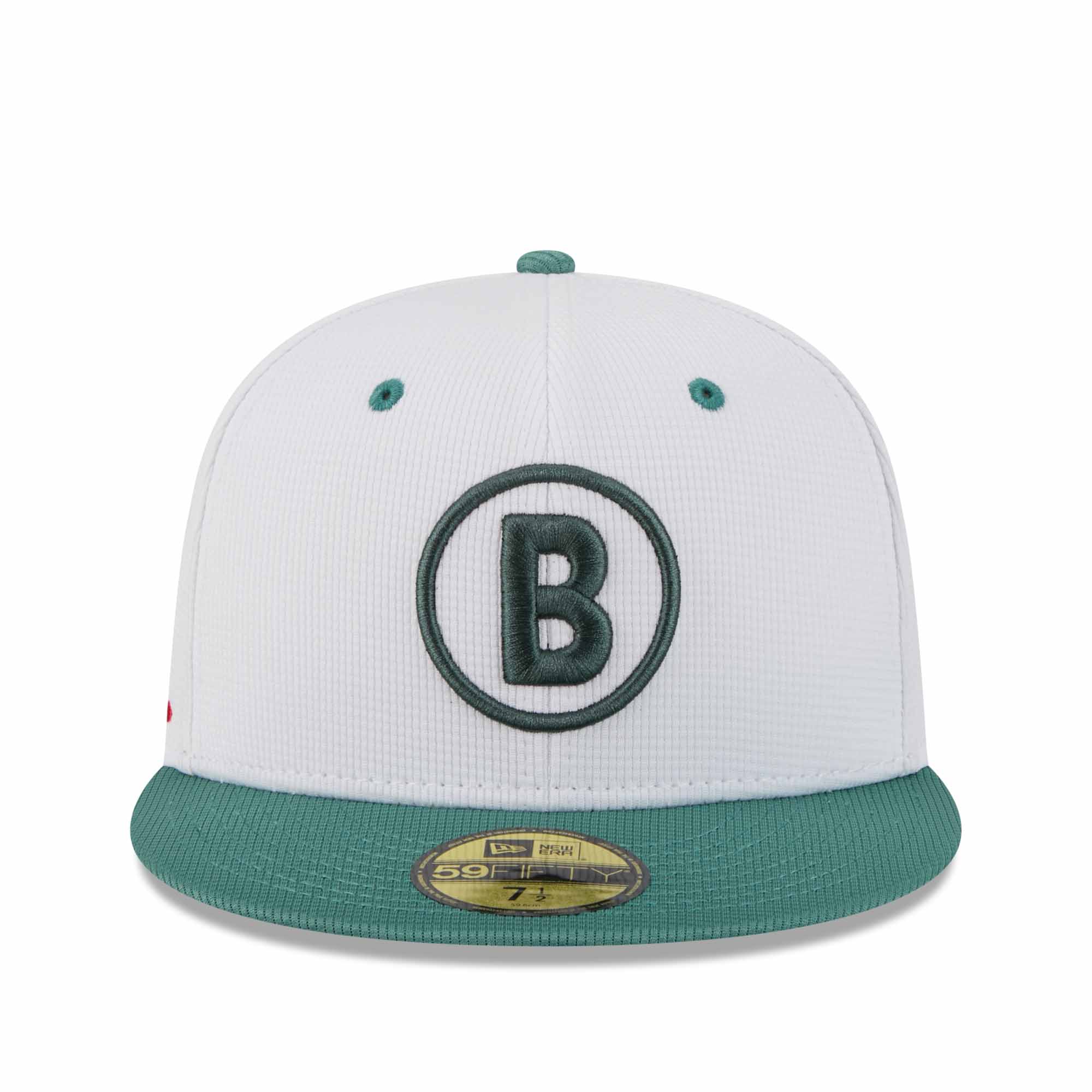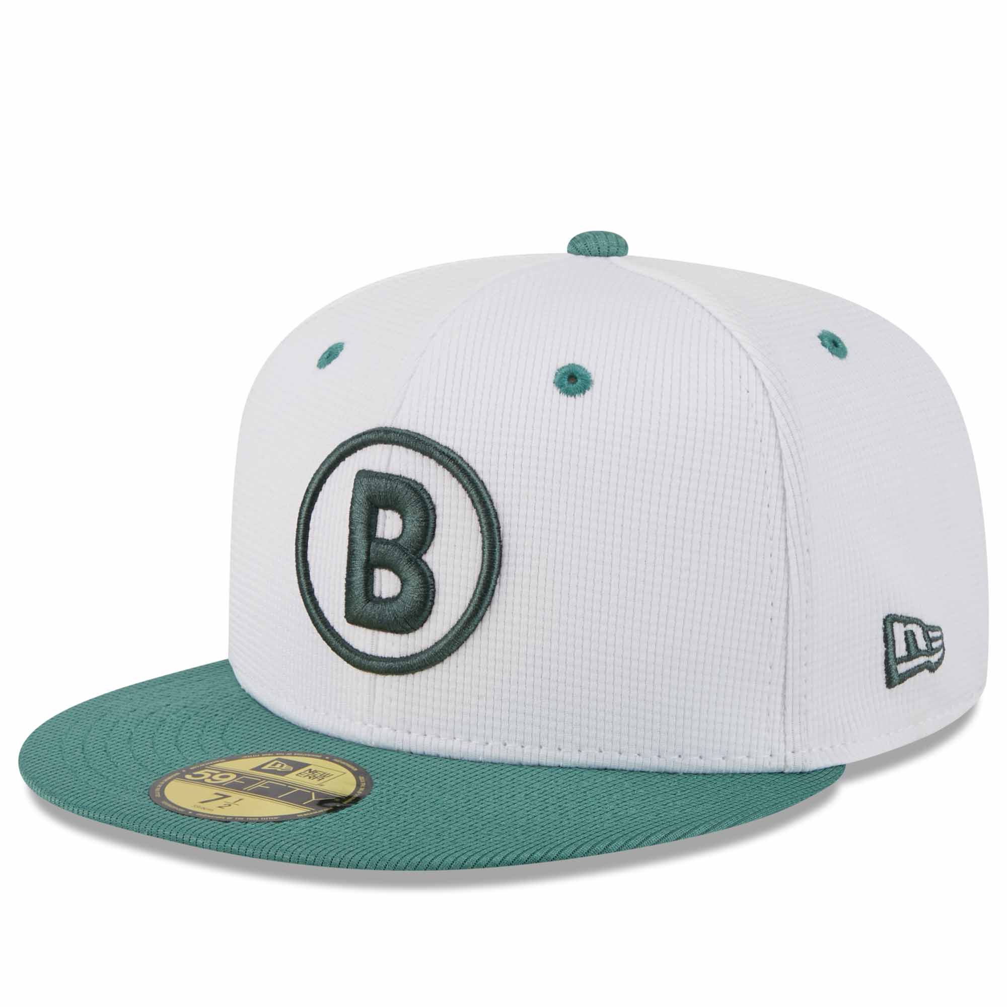 Boston Red Sox New Era Official Batting Practice 59Fifty Cap - 25 City Connect - White/Green. The 59FIFTY is an icon in sport and street culture thanks to its status as the official on-field cap of MLB. Embroidered graphics with raised details, Six panels with eyelets, Breathable construction, Material: 100% Polyester, Wipe clean with a damp cloth, Flat bill with ability to curve, Fitted, High Crown, Structured fit