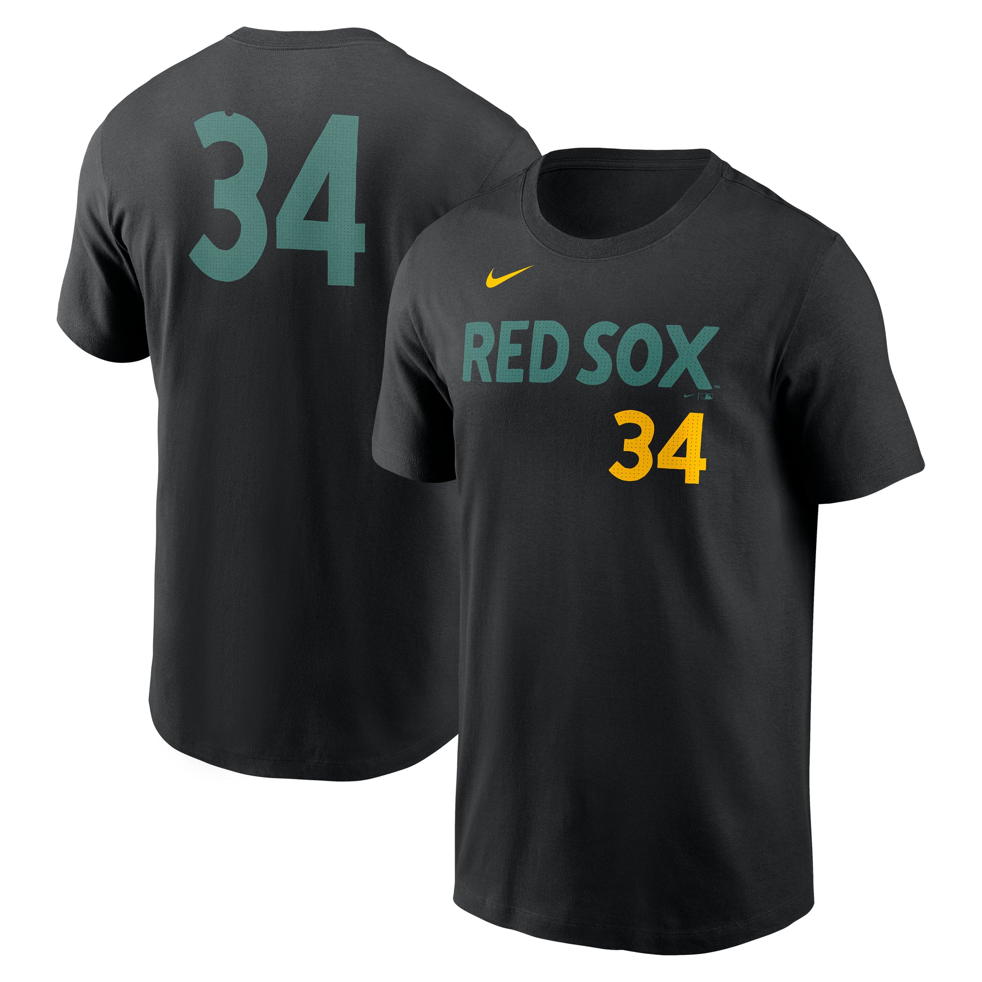 Boston Red Sox Nike City Connect Player T-Shirt Ortiz #34 - Black. This basic black tee features screen printed logos on front and back. Material: 100% Cotton, Screen print graphics, Crew neck, Short sleeve, Tagless Collar.