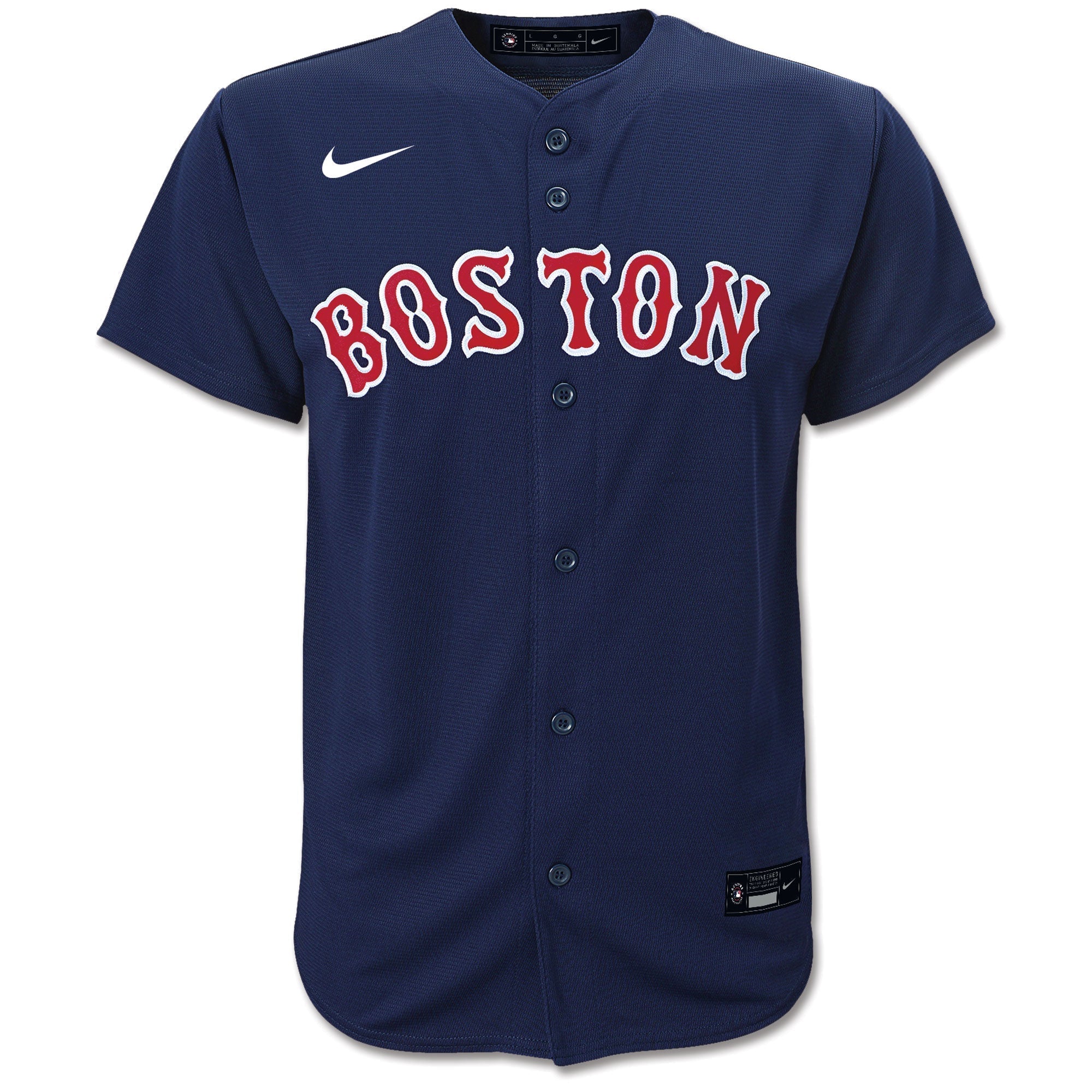 Boston Red Sox Nike Kids Replica Jersey - Road Alternate - Story #10. Get the kids version of dressing like the players with the new Nike replica jerseys. Material: 100% Polyester, Heat-sealed tag, Rounded droptail hem, Fabric applique graphics, Machine wash, tumble dry low, Tagless Collar.