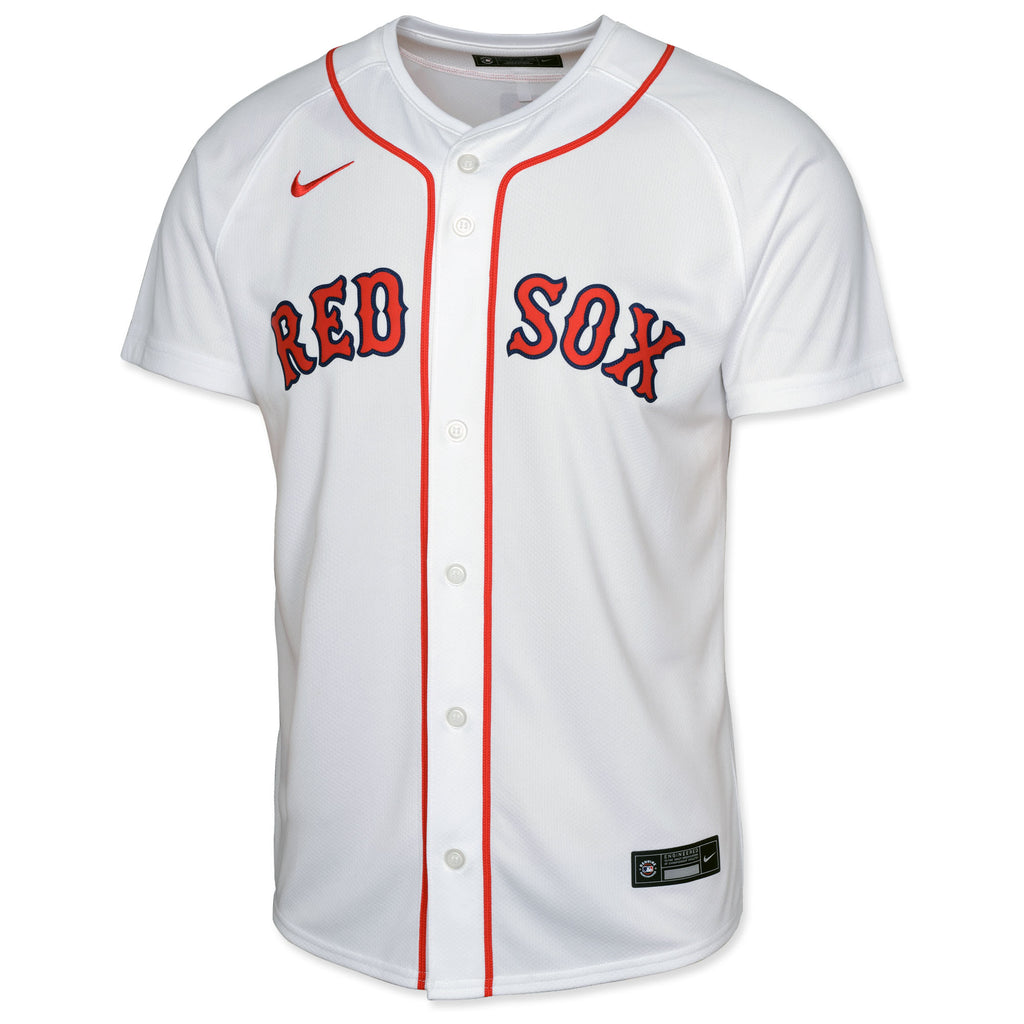 Boston Red Sox Nike Youth Limited Jersey Blank - Home. Nike Dri-FIT ADV technology combines moisture-wicking fabric with advanced engineering and features to help you stay dry and comfortable. Standard fit, Nike Limited jersey is inspired by the on-field uniform of your favorite team, Recycled trims and twill details help provide a more authentic look and feel, Vapor Premier chassis is made with breathable, high-performance fabric that improves mobility and moisture management, Heat-sealed twill front logo or wordmark with zigzag stitching, Sublimated sleeve patches, Embroidered Swoosh logo, Heat-applied woven MLB Batterman and jock tag, Full-button front, Rounded hem, Material: 100% Polyester, Machine wash, tumble dry low, Jersey Color Style: Home, Move To Zero is Nike's journey toward zero carbon and zero waste to help protect the future of sport. Apparel labeled “sustainable materials” is made with at least 55% recycled content.