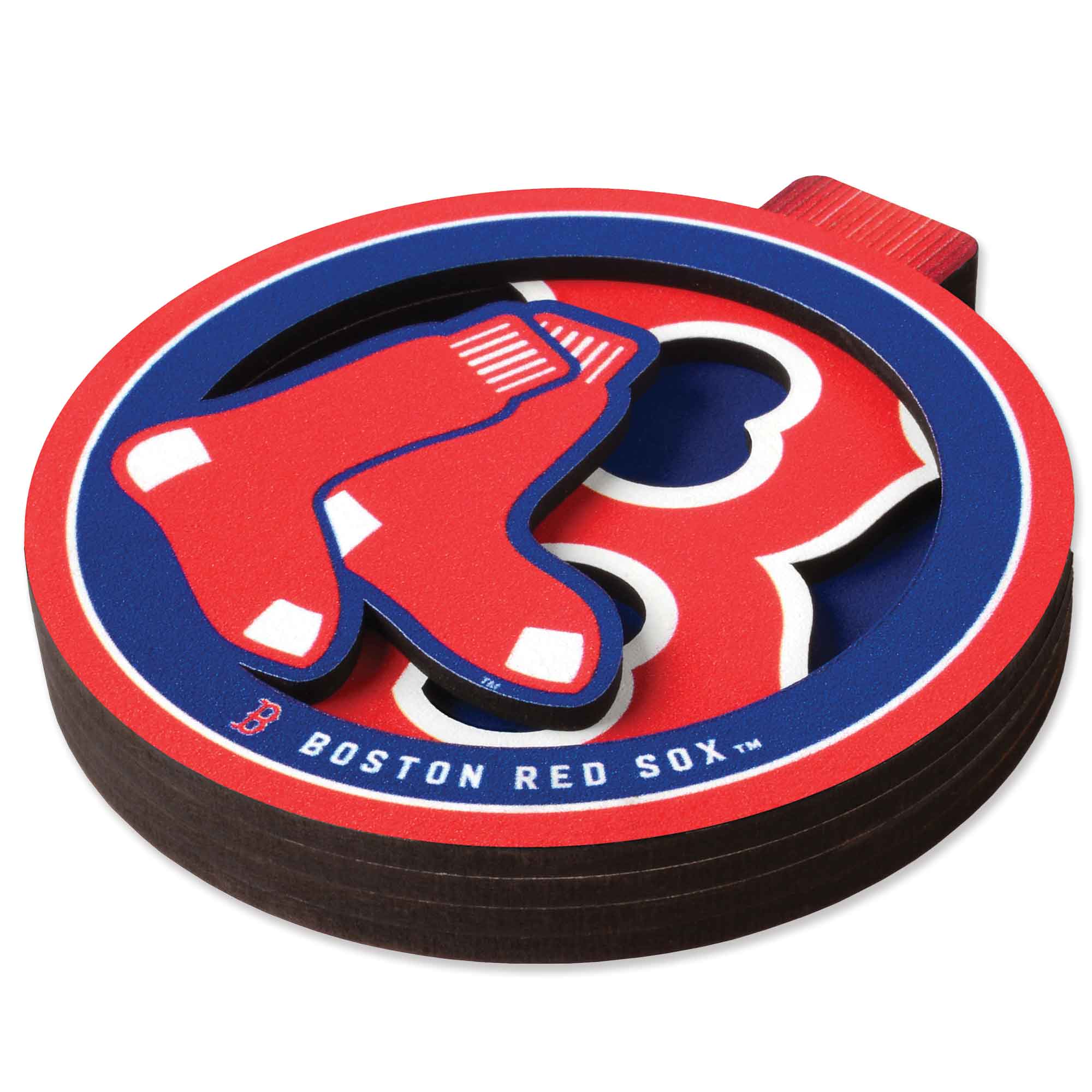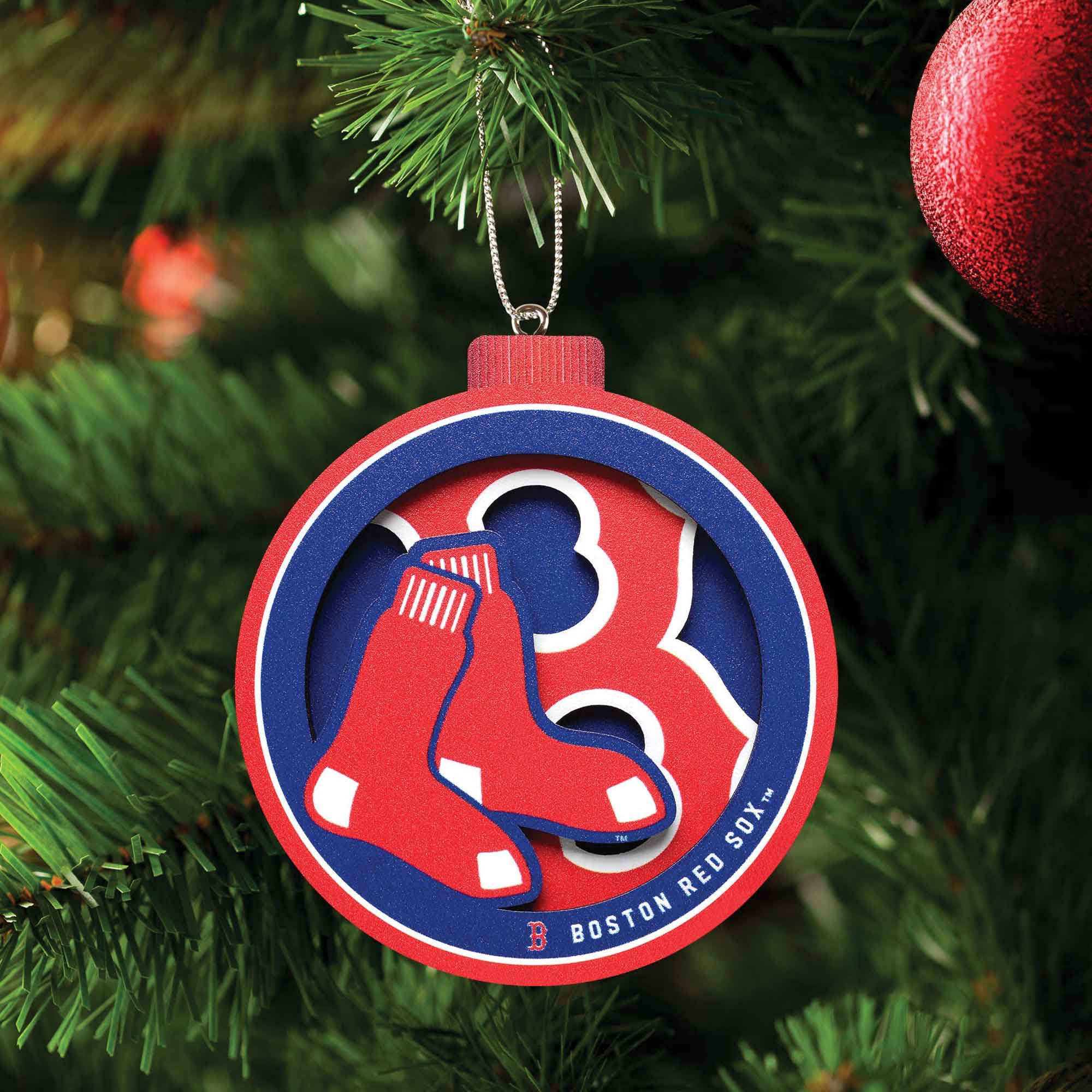Boston Red Sox Ornament - 3D Logos, perfect for the Boston Red Sox fan's christmas tree! Designed in the USA, Double-sided graphics, Printed graphics, Ready to hang, Measures approx. 3'' in diameter, Inserted hook for hanging, Material: 100% Wood