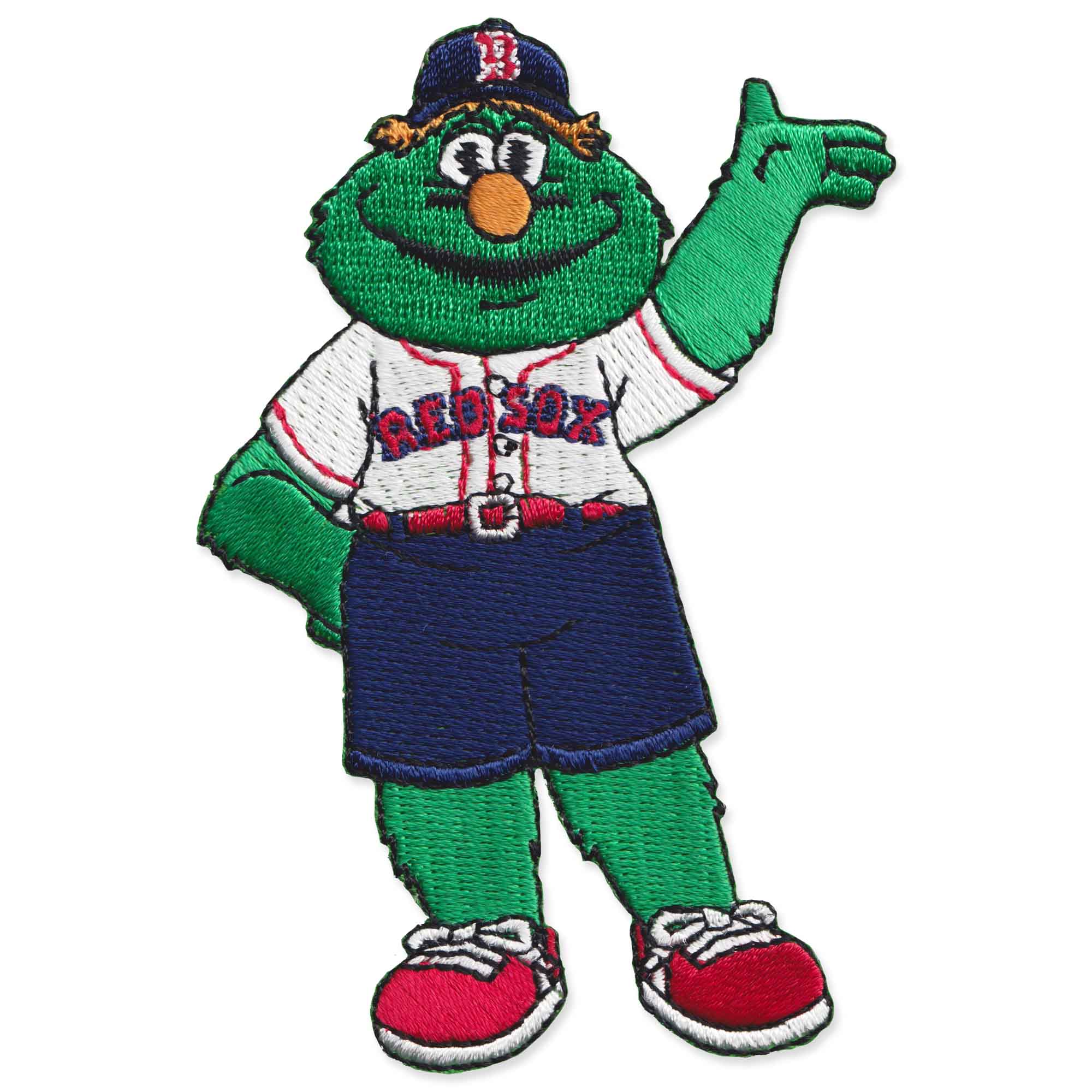 Patch of the Boston Red Sox Mascot, Wally the Green Monster, that measures 4 inches tall by 2 1/2 inches wide. This is a self adhesive patch, will adhere to virtually any surface.
