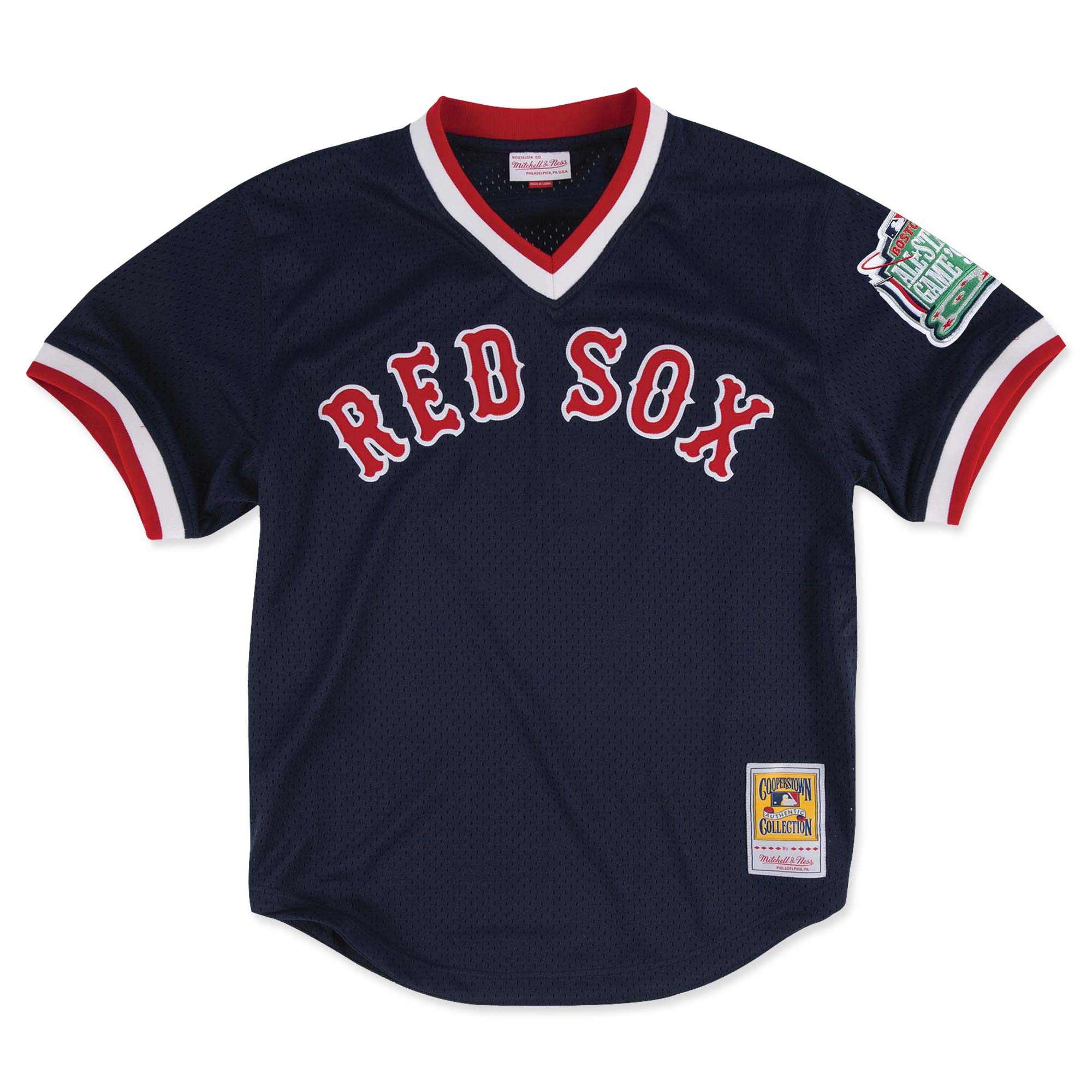 Boston Red Sox Pedro Martinez V-Neck M&N Jersey 100% Polyester fabric, Jock tag, Mesh jersey, Officially licensed MLB product, Rib-knit collar & arm holes, Rounded hem, Tackle twill numbers & lettering, V-neck, Material: 100% Polyester, Jersey Color Style: Batting Practice