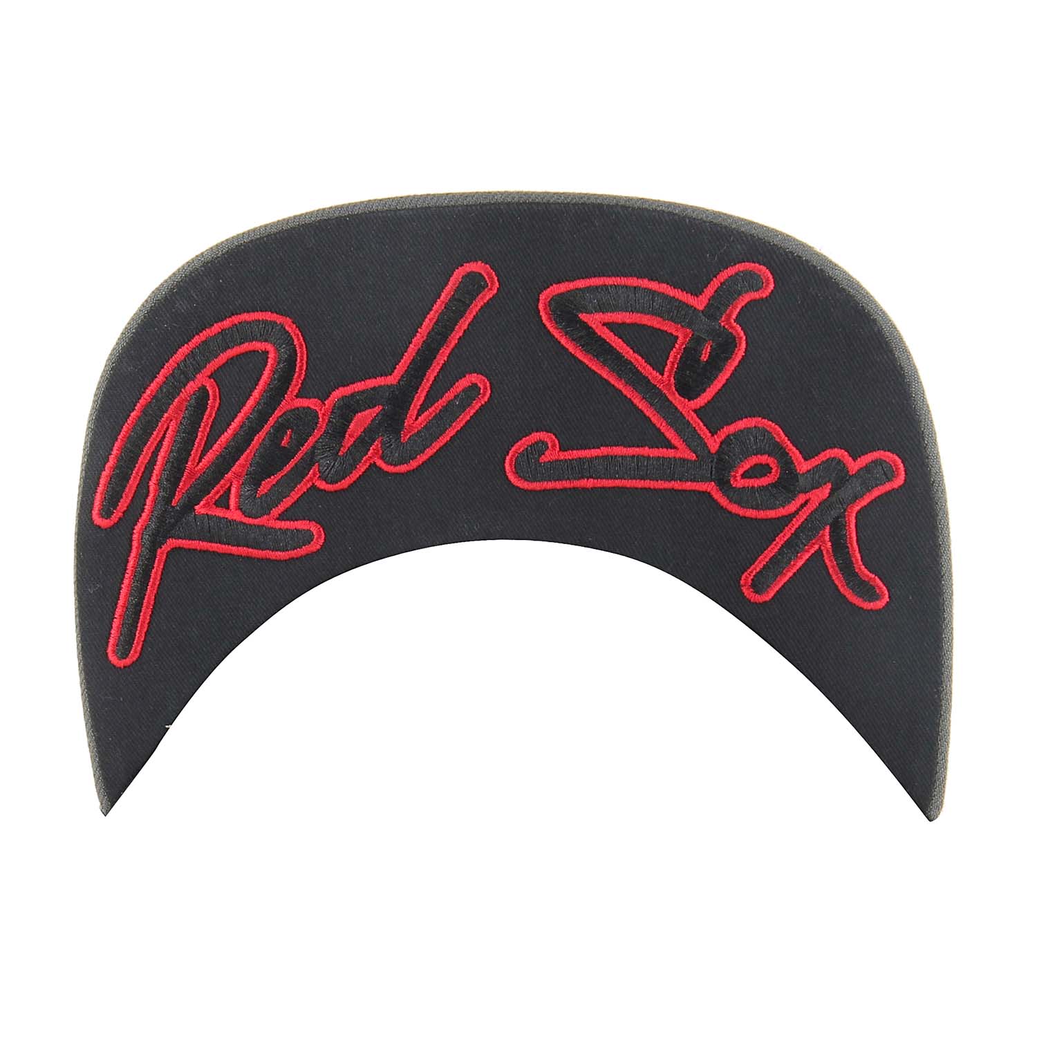 Boston Red Sox 47 Snapback - Oath Script - Charcoal Hat. Made from 85/15 wool blend. Our two tone snapback cap features a raised embroidered front logo and a flat embroidered script on the undervisor for a bright crisp look.