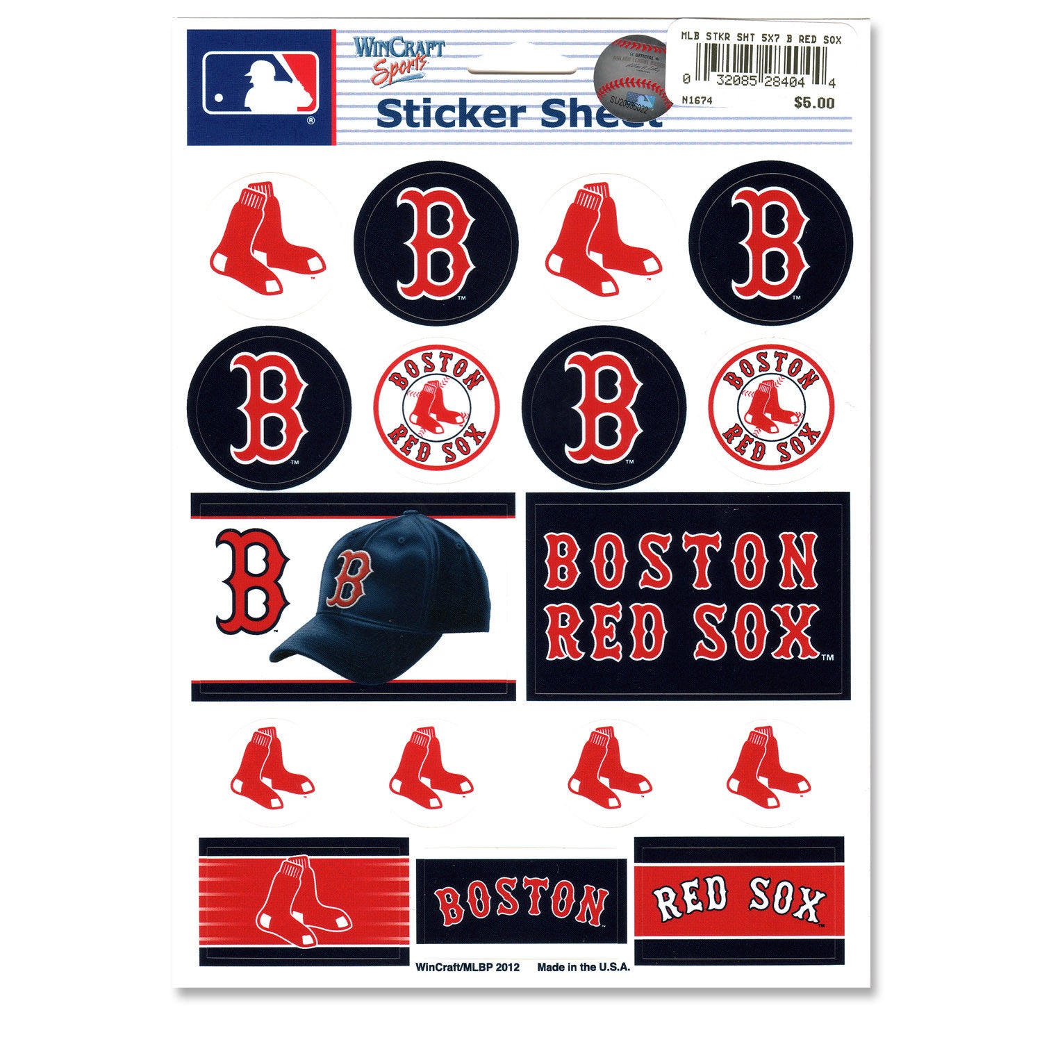 Red Sox 5" x 7" sticker sheet contains an array of stickers. Both circle and square stickers that include the 2 Sox, "B", Circle and arch logos along with a Red Sox cap sticker. Decorate anything you'd like by adding some Red Sox flair with these Wincraft stickers.