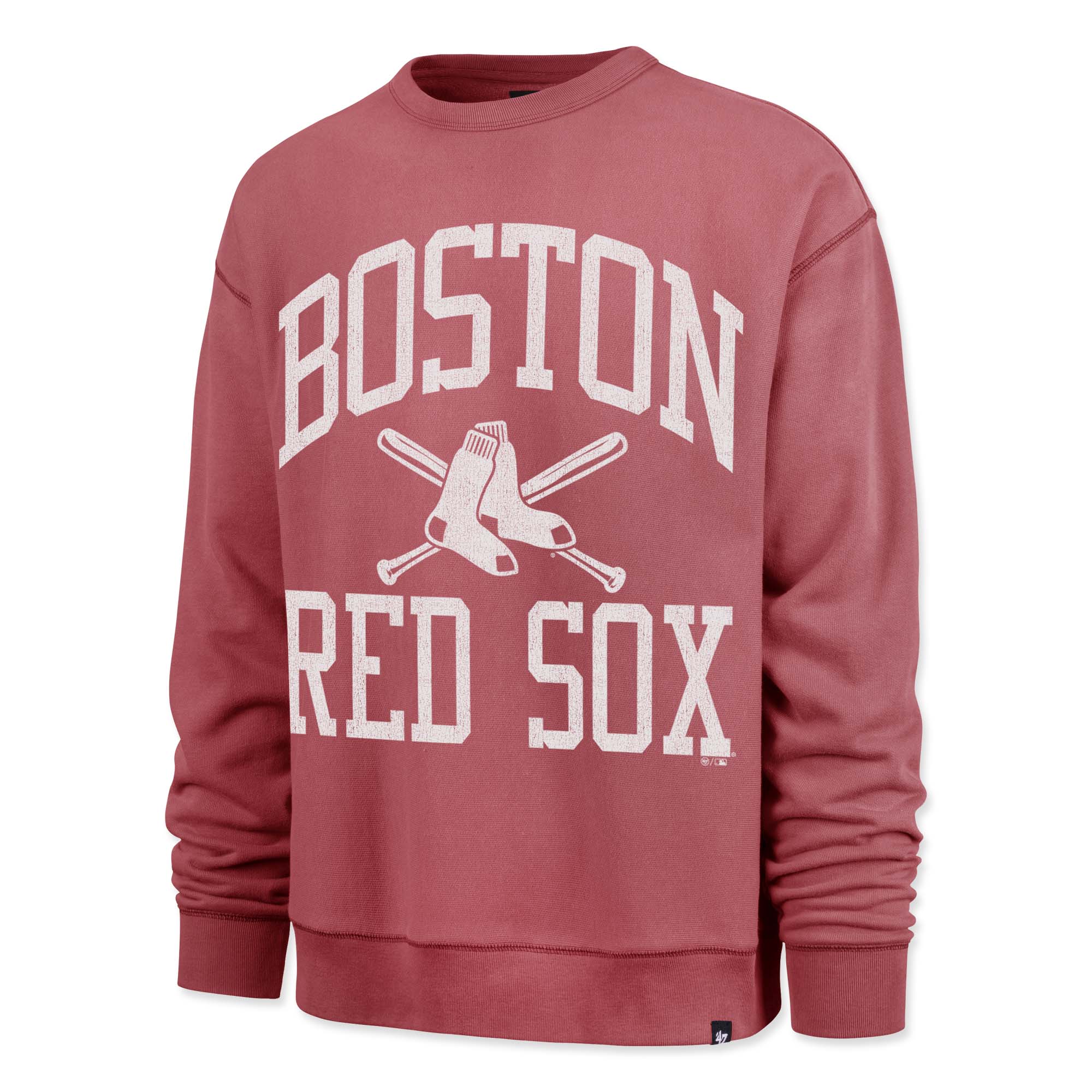 Boston Red Sox '47 Wave Rider River Crew - Cayenne. The Contemporary Basics Collection brings together contemporary silhouettes with classic logos and wordmarks. The Trademark '47 Foundation Crew is a contemporary-fit pullover sweatshirt crafted from heavyweight reverse weave Tanker fleece to help prevent shrinking and torquing, featuring a distressed screen printed logo on the front.